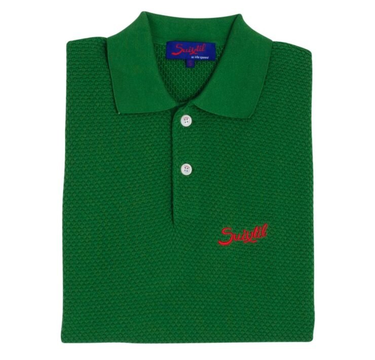 Suixtil 100% Pima cotton Nassau short sleeve polo, pasture green
