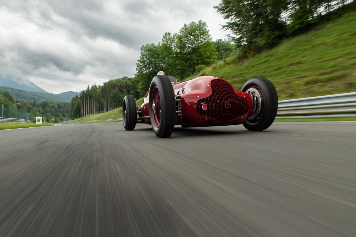 This is the Salzburgring, Austria. We are here because the organisers of the Gaisbergrennen rally let us slip out on the track between sessions with this magnificent 1948 Alfa Romeo 12C/316. The twelve-cylinder dates back to 1936 and was part of Vittorio Jano’s infamous riposte to the German Silver Arrows that dominated Grand Prix racing.
