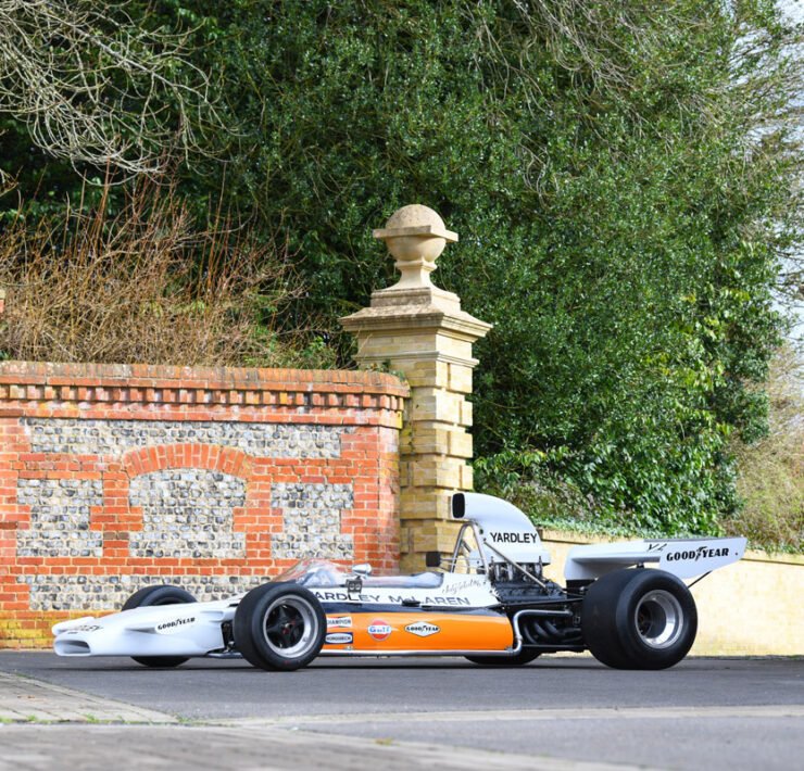 The McLaren M23 from the 1973 season is priced much higher, from €1,750,000 to €2,250,000 ($1,9 million – 2,45 million). The car – chassis #M23-2 – was raced for much of the season by Peter Revson, but Jody Scheckter drove two Grand Prix in it as well. Revson won the British Grand Prix in this chassis, a race famous for a multiple-car pile-up caused by… Scheckter in another McLaren M23.