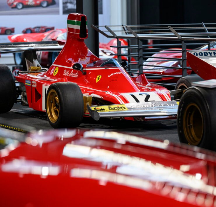 Apart from the road cars, Friedhelm Loh has some very impressive race cars in his collection as well. Regarding Ferrari, you can go see the last Ferrari F1 world champion car to date; Kimi Raikkonen’s 2007 F1-2007. Or the F2004 with which Michael Schumacher won his fifth – successive – world championship crown for Ferrari in 2004. Schumacher took eight victories that season, still Ferrari’s best performance in Formula 1. Lauda, Ickx, Bandini, all Ferrari F1s that are present in this exhibition.