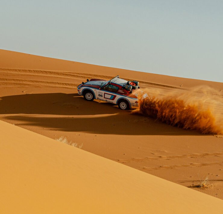 Jan Kalmar specialises in toughened-up Porsches. And it’s not just looks. With his ‘Beyond Adventure’ travel program, his fleet of Porsches is currently sandsurfing the desert dunes of Morocco, and tackling the Atlas Mountains. Jealous? We? Naaaah.