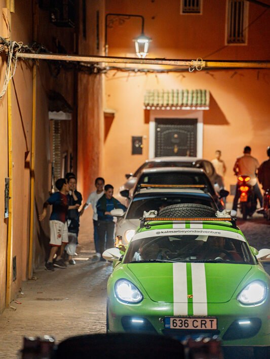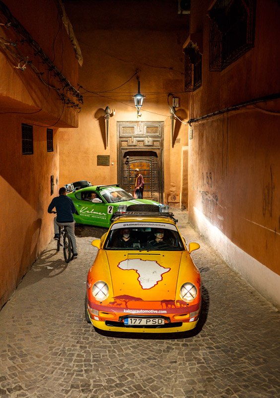 The other part of Kalmar’s business is showing his clients what his cars are capable of. Transcontinental crossing of the Americas in Porsches has already been crossed of the list, and these days the Kalmar Beyond Adventure team set up camp in Morocco. The program leads participants on an eight-day, 1000-km journey from Marrakesh to the Sahara and the Atlas mountains.