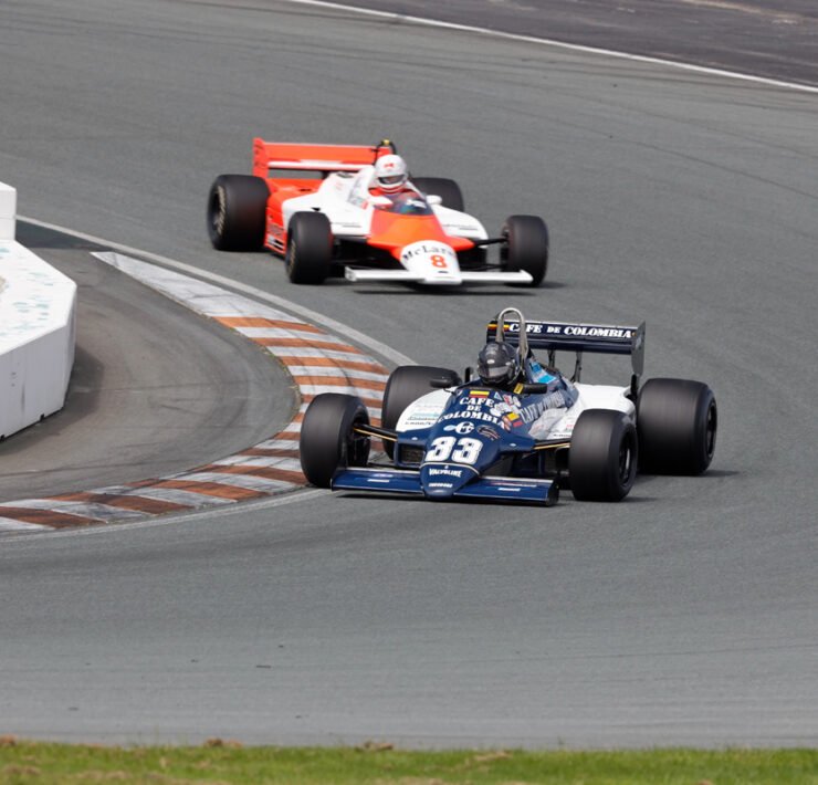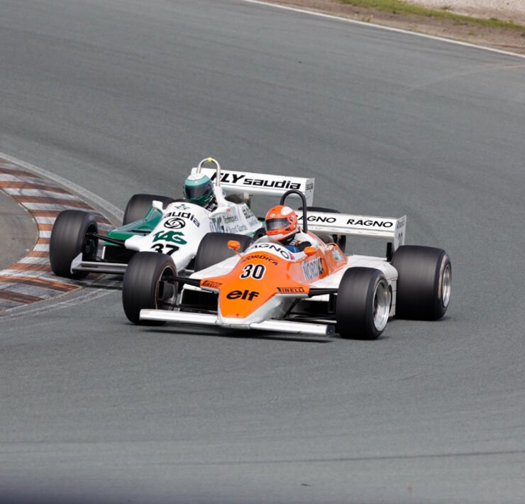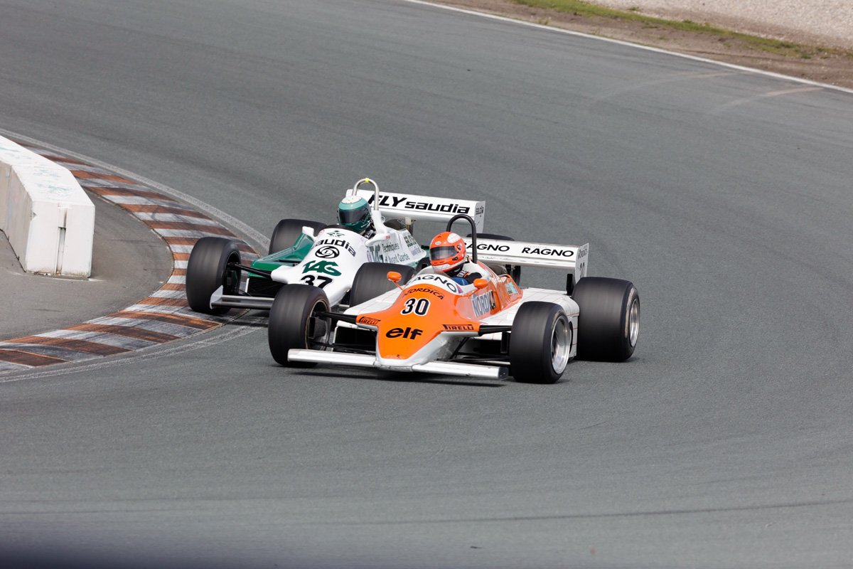 In race 1 of the 1965-1985 F1 cars, Marco Werner took the win in a Lotus 87B. The race ended under safety car, after Wrigley and Constable ran into each other in their Tyrrell 011s whilst battling for a podium finish. Nick Padmore came second in the Lotus 77. Ken Tyrrell (Tyrrell 011) rounded out the top-three.