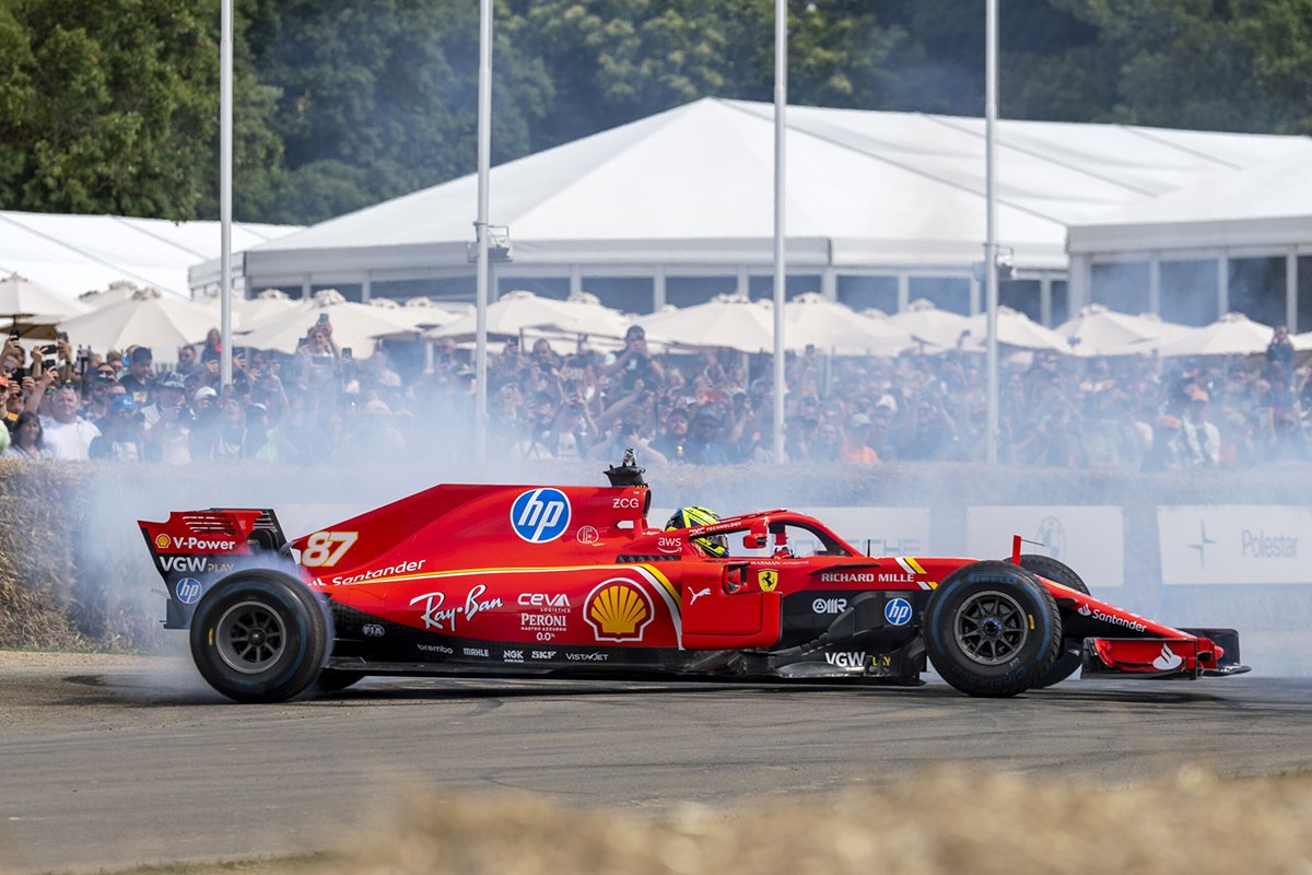 For some, the Goodwood Festival of Speed is not so much Kate Bush, as it is Deep Purple. Ferrari’s new British talent Oliver Bearman for instance, seen here laying a strategic smoke screen in the Ferrari SF71H that Sebastian Vettel (actually the big absentee this year) campaigned in 2018. Bearman (19) successfully stepped in for Carlos Sainz Jr at the Saudi Arabian GP this year, scoring points and seeing his drive rewarded with a seat with Haas next season.