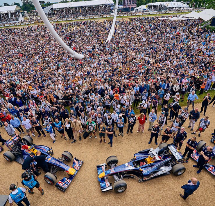 Just try to add this up in your mind. There is the 20 years of Red Bull Racing as a F1 constructor, with the likes of Max Verstappen, Sergio Perez, Christian Horner, Adrian Newey showcasing the history of the RBs on the drive in front of Goodwood House.