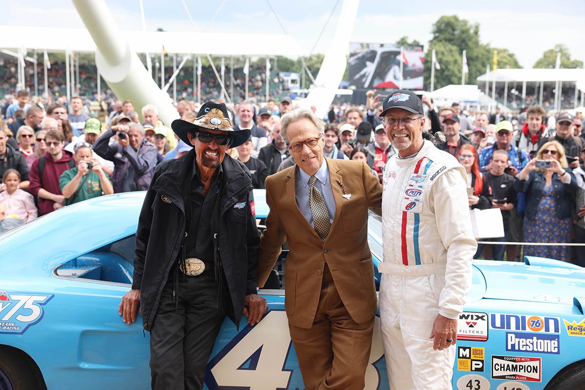 EDITORIAL USE ONLY NASCAR driver Richard Petty, AKA ‘The King’, The Duke of Richmond, and Kyle Petty at the Goodwood Festival of Speed presented by Mastercard, which takes place in the parkland surrounding Goodwood House in West Sussex. Picture date: Friday July 12, 2024. PA Photo. The event champions future mobility and technology and this year celebrates 130 years of motoring innovation with the theme 'Horseless to Hybrid – Revolutions in Power'. The event runs from July 11-14. Picture credit should read: Matt Alexander/PA Wire.