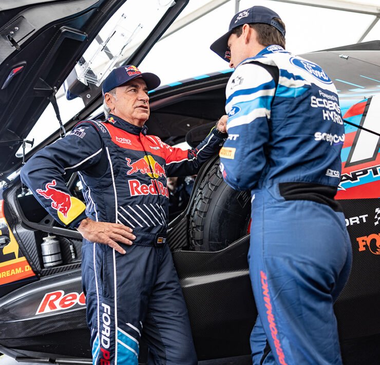 It’s not just the asphalt heroes. The Festival of Speed has a special stage carved out in the woods as well. Carlos Sainz – here with Ford’s Adrien Fourmaux – was at hand to demonstrate his new Dakar weapon; the Ford Raptor.