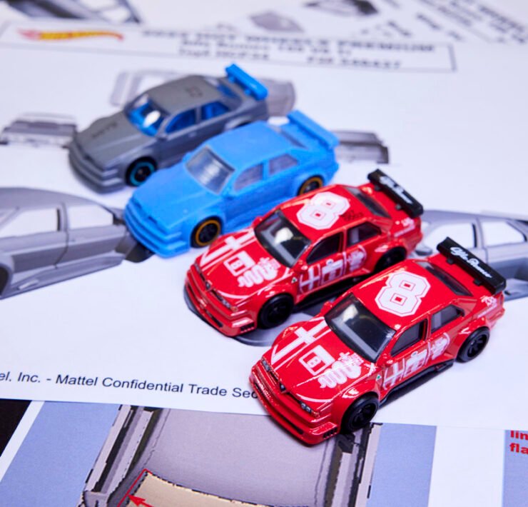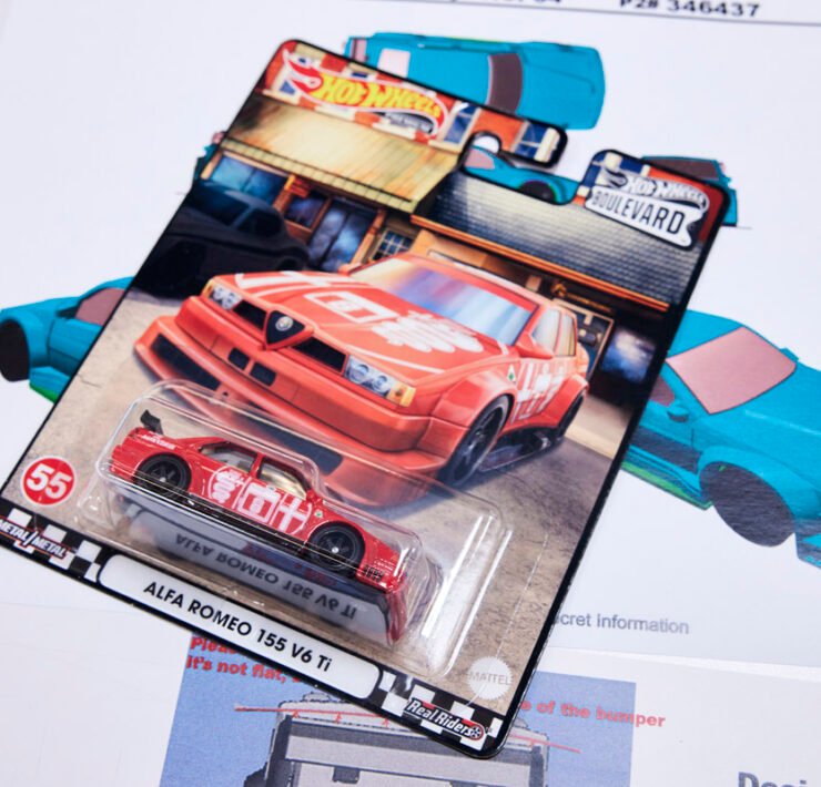 With the Alfa Romeo 155, Mark’s job wasn’t to simply shrink the real-life DTM racer down to a 1:64 scale mould; Mattel’s designers mine the character of the car they’re making to truly replicate (and occasionally exaggerate) its key traits. “The gentleman at Alfa Romeo was a designer himself which meant he could be a little more critical of what we’d done,” Mark says of the validation process. “I was able to use his input to force my manufacturing people to do the things I really wanted in the first place.”