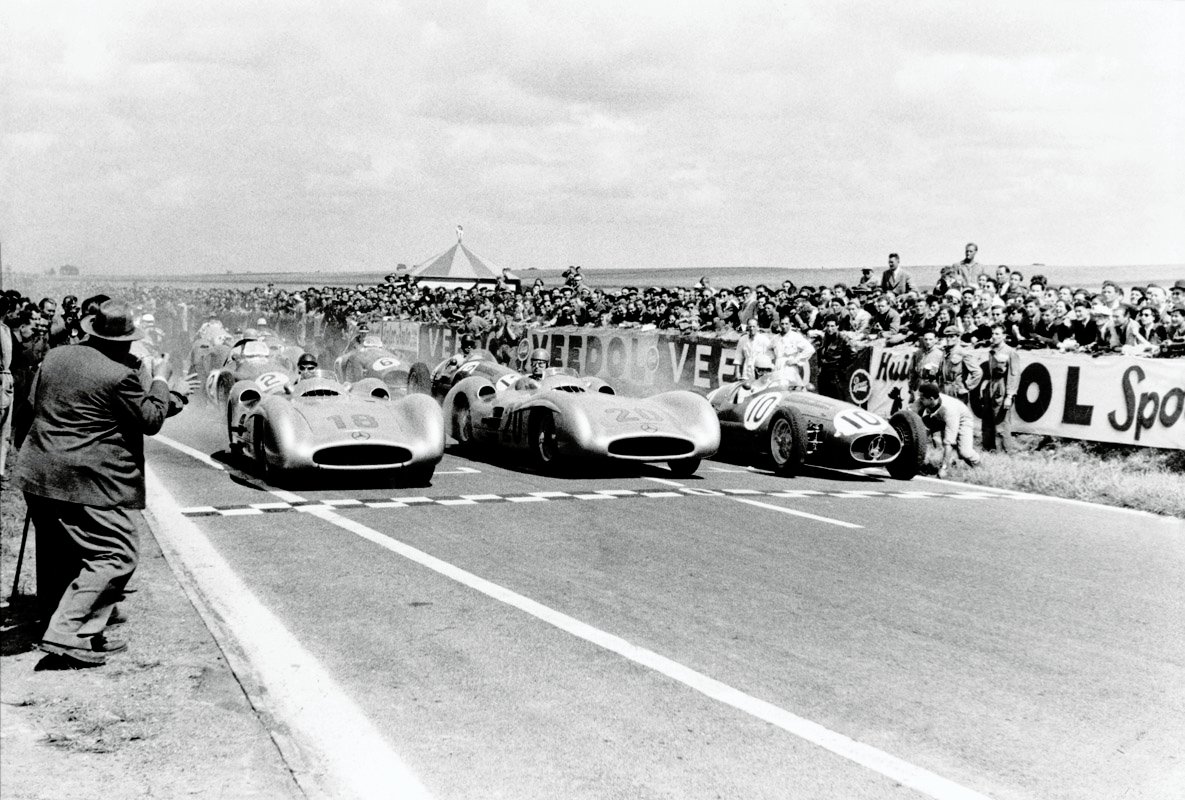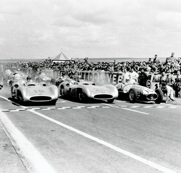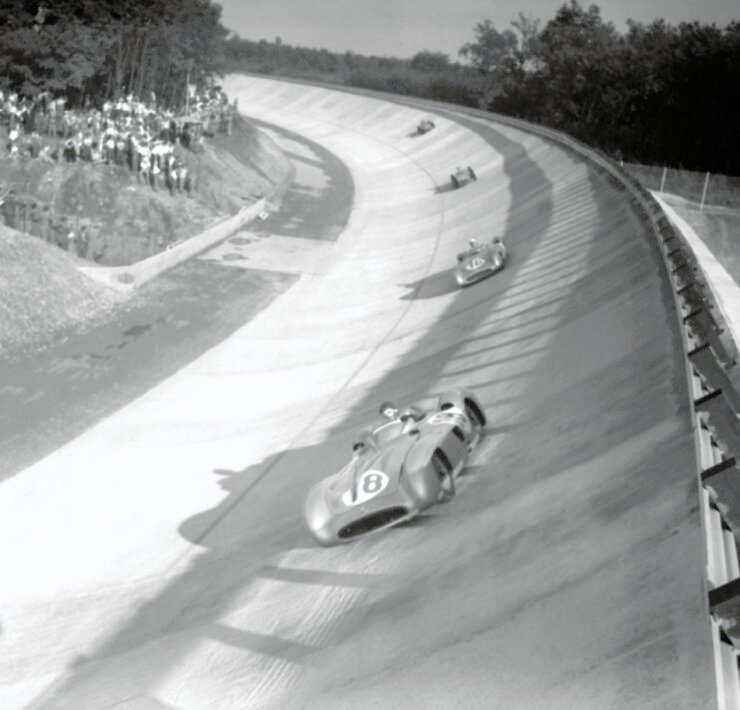 The Mercedes W 196 Streamliner was only ever raced in closed-wheel trim at the high-speed Reims race in France and at Monza in Italy. Moss set fastest lap in the 1955 Italian Grand Prix in the Streamliner. After that race, Mercedes retired from motorsport.