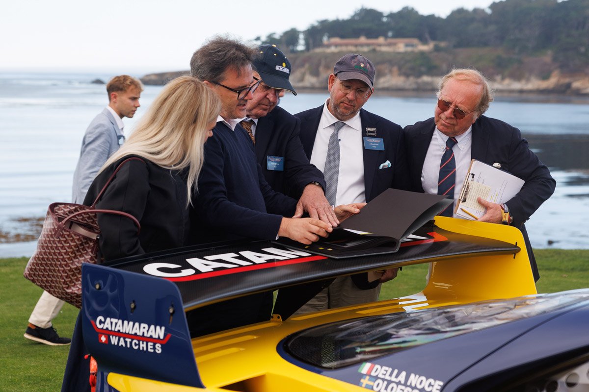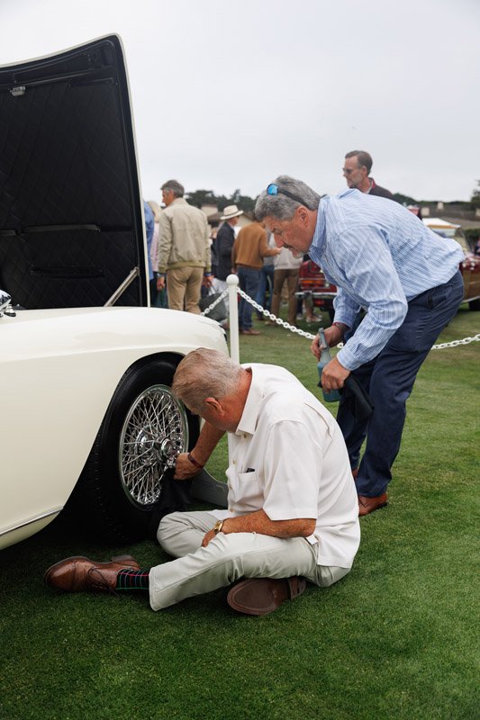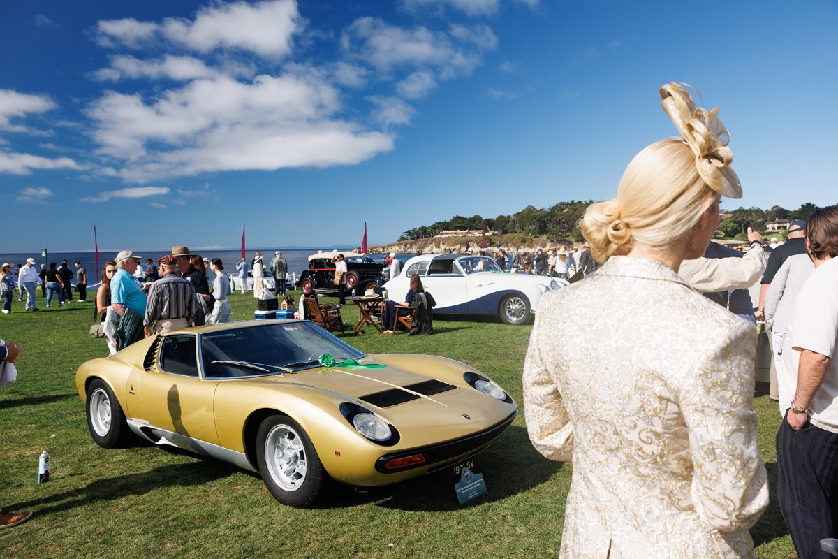But little did we know when we arrived at the lawn at 5 AM for the ‘dawn patrol’ and have our coffee, donut and the hat everybody is looking for on the field, to differ the real enthusiasts from the casual visitor. At 6:25 AM, Concours Chairman Sandra Button welcomed the first car onto the lawn, the Lamborghini Miura P400 that would become runner up in the preservation class.