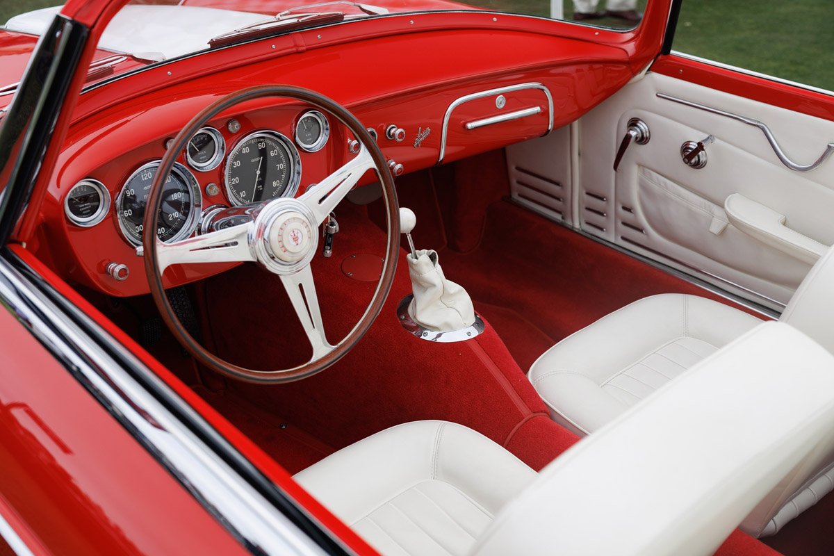 Among the countless cars on the field everybody finds something to his taste, and so did we. First, we’d like to mention the cover cars of this year’s event poster, the Maserati A6G54 Zagato and the Maserati Frua Spider, both brought by Jonathan Seagal. The latter was also awarded most elegant sports car. The Maserati racing class featured great early racers including the Maserati 250F, winning the 1956 Italian GP in Monza in the hands of Stirling Moss. The whole line-up of Mille Miglia sports cars of the era included an A6GCS, a 150S, 200SI, 300S as well as the big-engined 450S, both in the typical spyder coachwork as well as the one off Costin Zagato version. Last but not least, the filigree Birdcage is always a great sight.