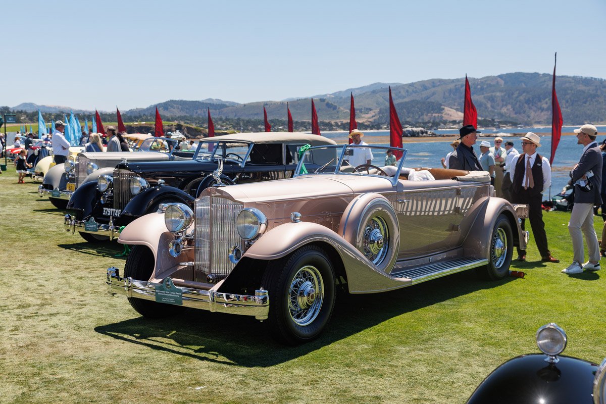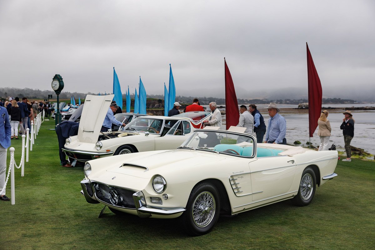Once again, the weather brought typical Monterey morning mist, which made the cars look rather grey. It was just a question of patiently waiting for the sun to really make the colours pop the way only Californian sun can do at the Pacific. The classes ranged from the antics of the brass era to race cars of the endurance era, including two classes for the featured brand Packard, two classes for Maserati and two Frua classes for the featured coachbuilder, one in particular for Frua-designed Maseratis. Those special classes were lined up along the ocean shore, where the others were spread out over the 18th fairway of one of the most famous golf courses in the world.