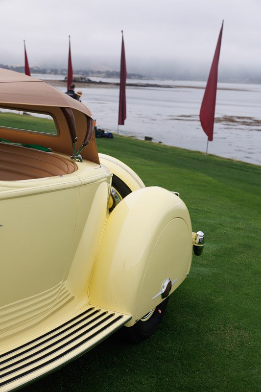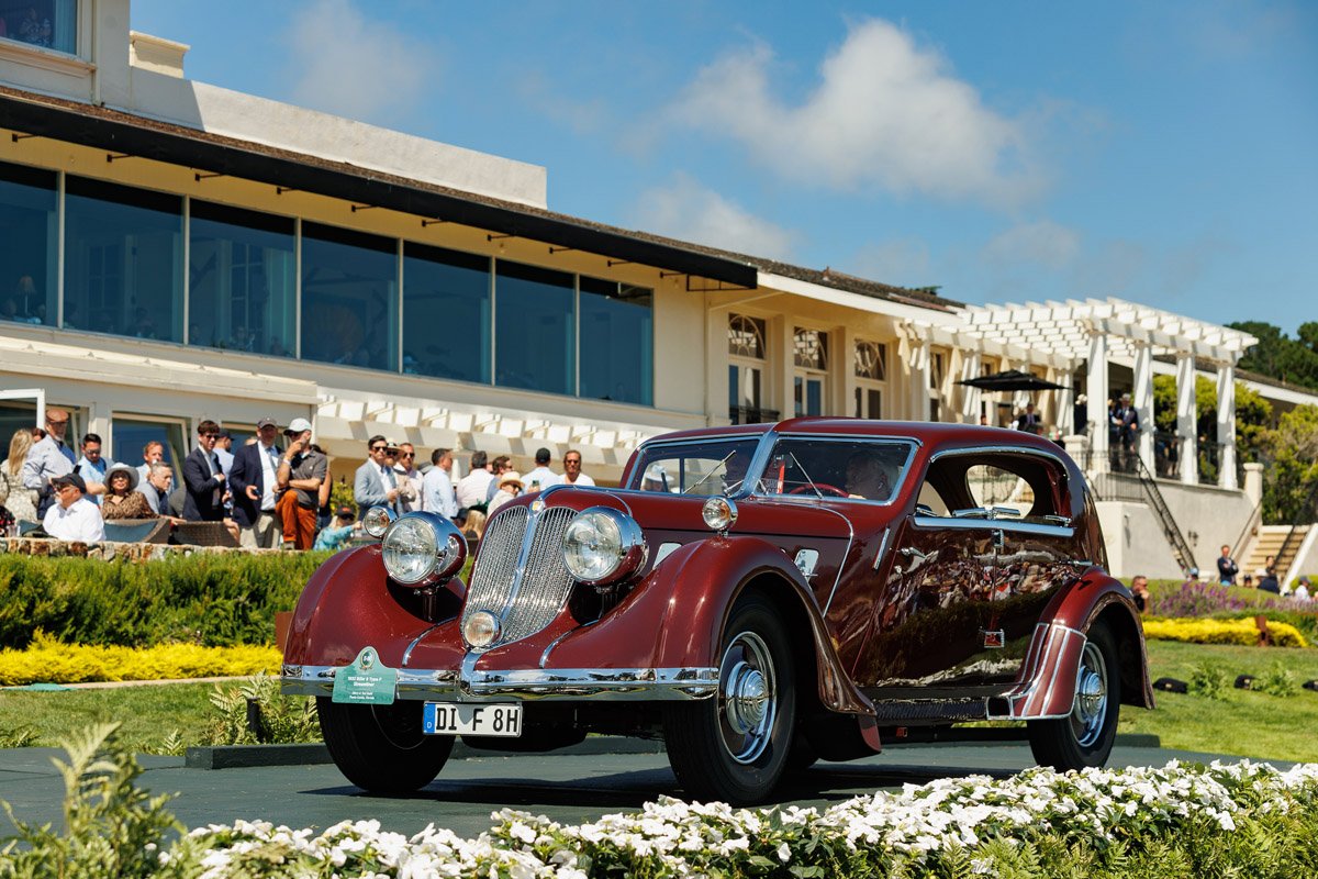 Speaking of the Corsica body brings us to one of our favourites we had spotted on the tour, the Mercedes-Benz 710 SSK brought by Chip Conner. What we thought would be a real contender for the top award did not even make it into the final selection, but it won its class as well as the Mercedes-Benz award. Another ‘black pre-war car’ that seemed to be a potential winner was the 1923 Hispano-Suiza H6B Fernandez et Darrin Cabriolet, entered by Sam and Emily Mann, yet once again only a class award was given.