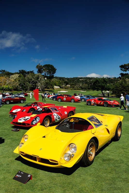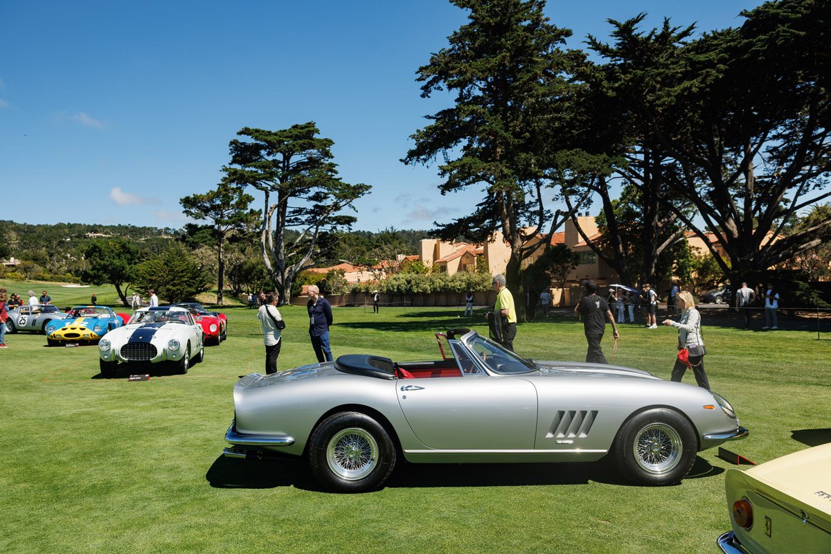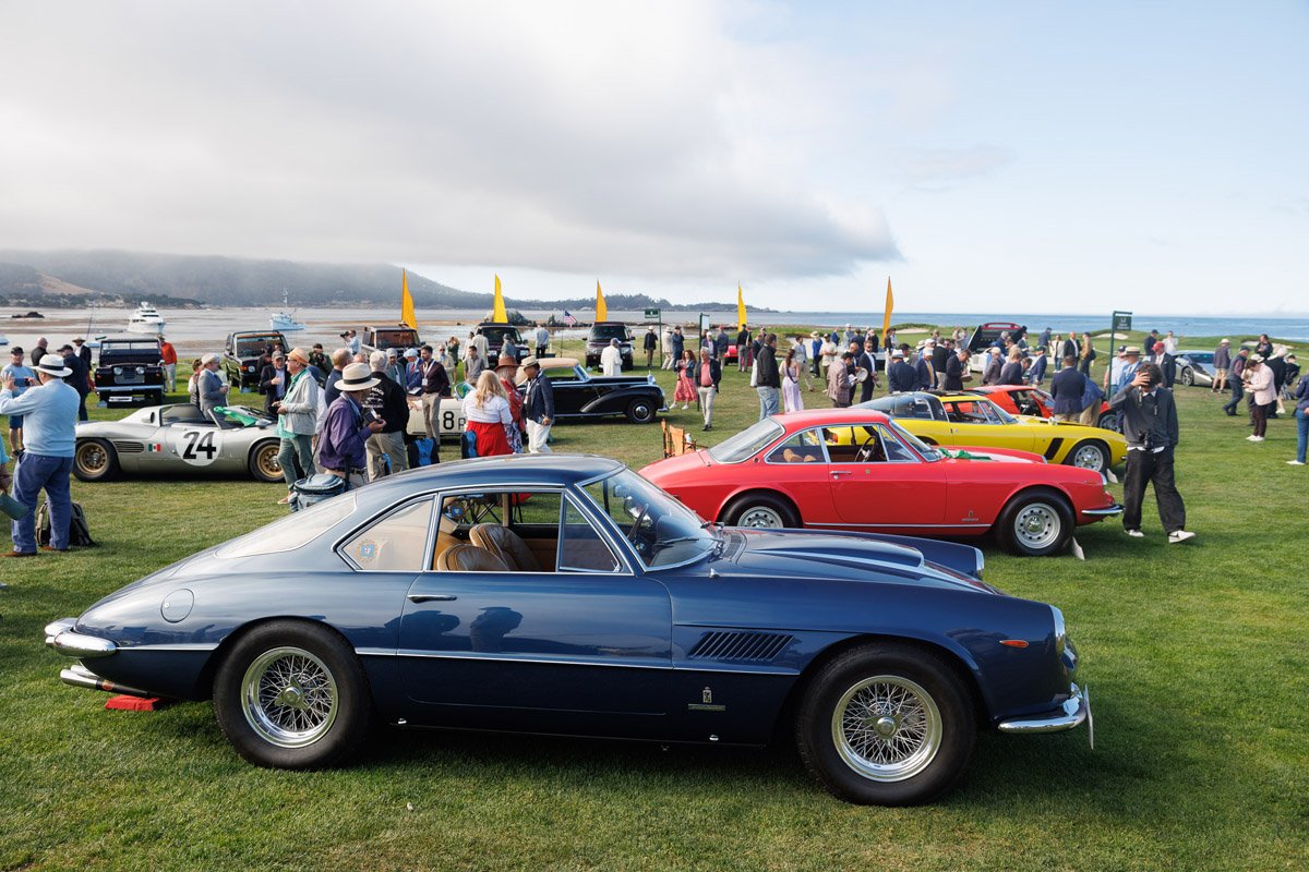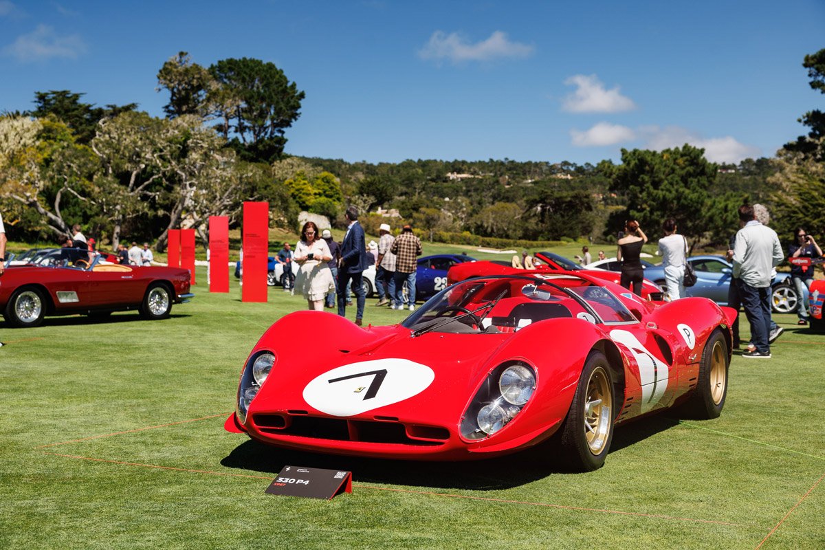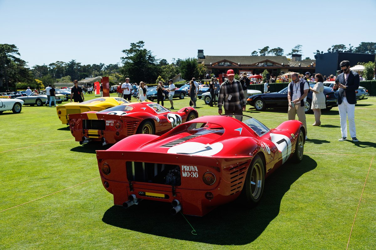 In the later class the Ferrari 250 GTO made its post-restoration debut brought over from the UK by Tom Hartley Jr. for is current owner. After launching a video of the Ferrari Classiche restoration just before the Concours, the car was awarded first in class followed by the road versions of the 250 GT PF Series 1 Cabriolet and a 410 Superamerica. America was also the theme on the first fairway where the Casa Ferrari had their display featuring the history of Ferrari in the US with several Daytonas, California Spiders, Americas and Superamericas as well as the 1967 Daytona 24 Hour race with the three Ferrari 330 P4 and 412 lined up.