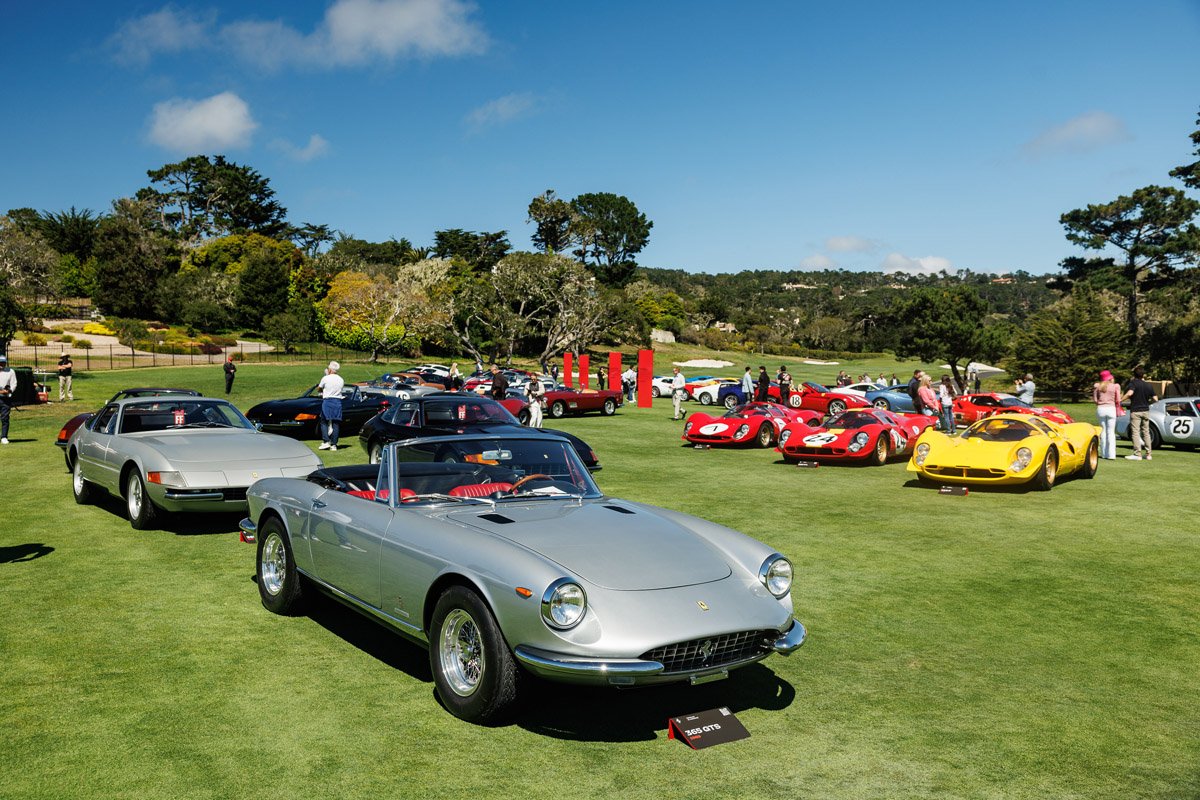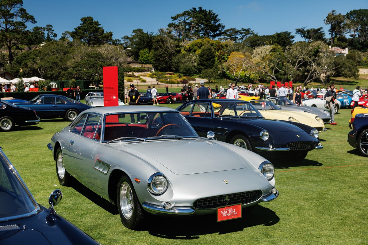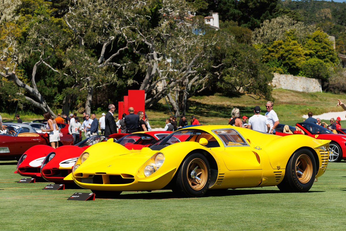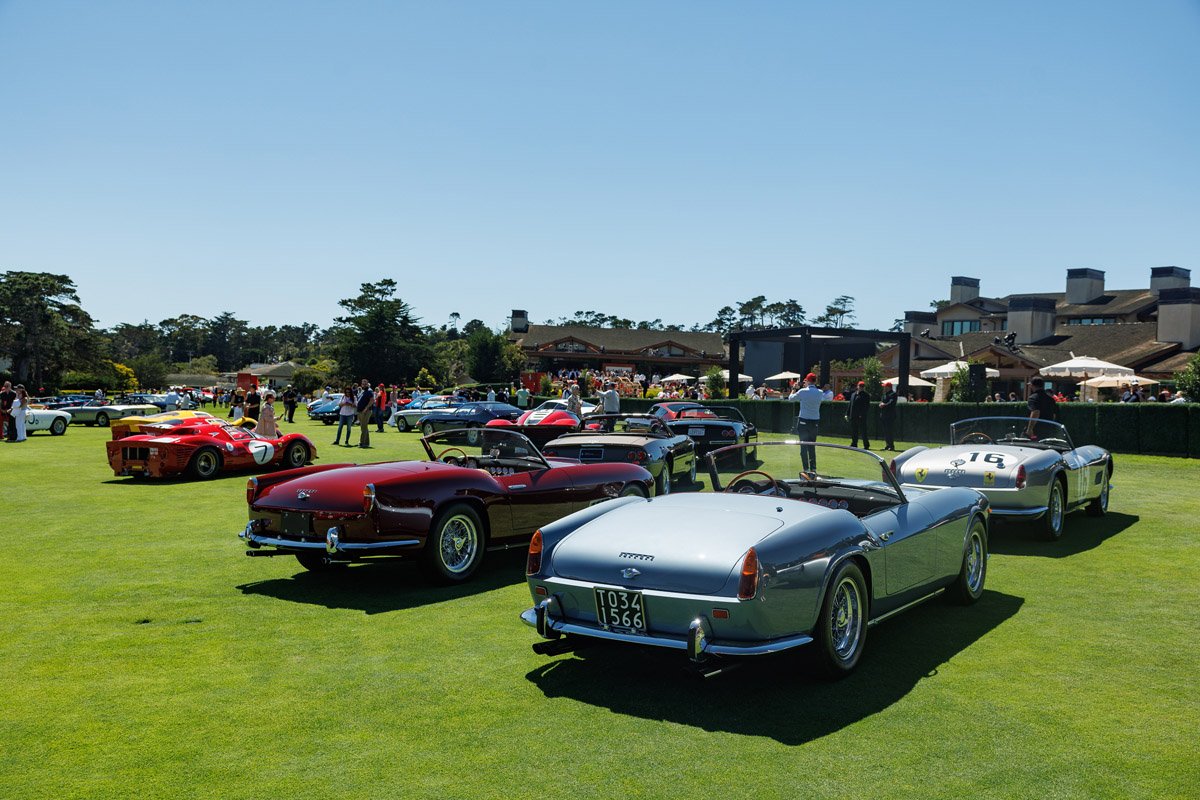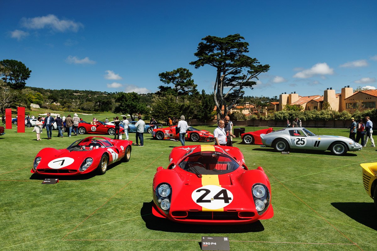 In the later class the Ferrari 250 GTO made its post-restoration debut brought over from the UK by Tom Hartley Jr. for is current owner. After launching a video of the Ferrari Classiche restoration just before the Concours, the car was awarded first in class followed by the road versions of the 250 GT PF Series 1 Cabriolet and a 410 Superamerica. America was also the theme on the first fairway where the Casa Ferrari had their display featuring the history of Ferrari in the US with several Daytonas, California Spiders, Americas and Superamericas as well as the 1967 Daytona 24 Hour race with the three Ferrari 330 P4 and 412 lined up.