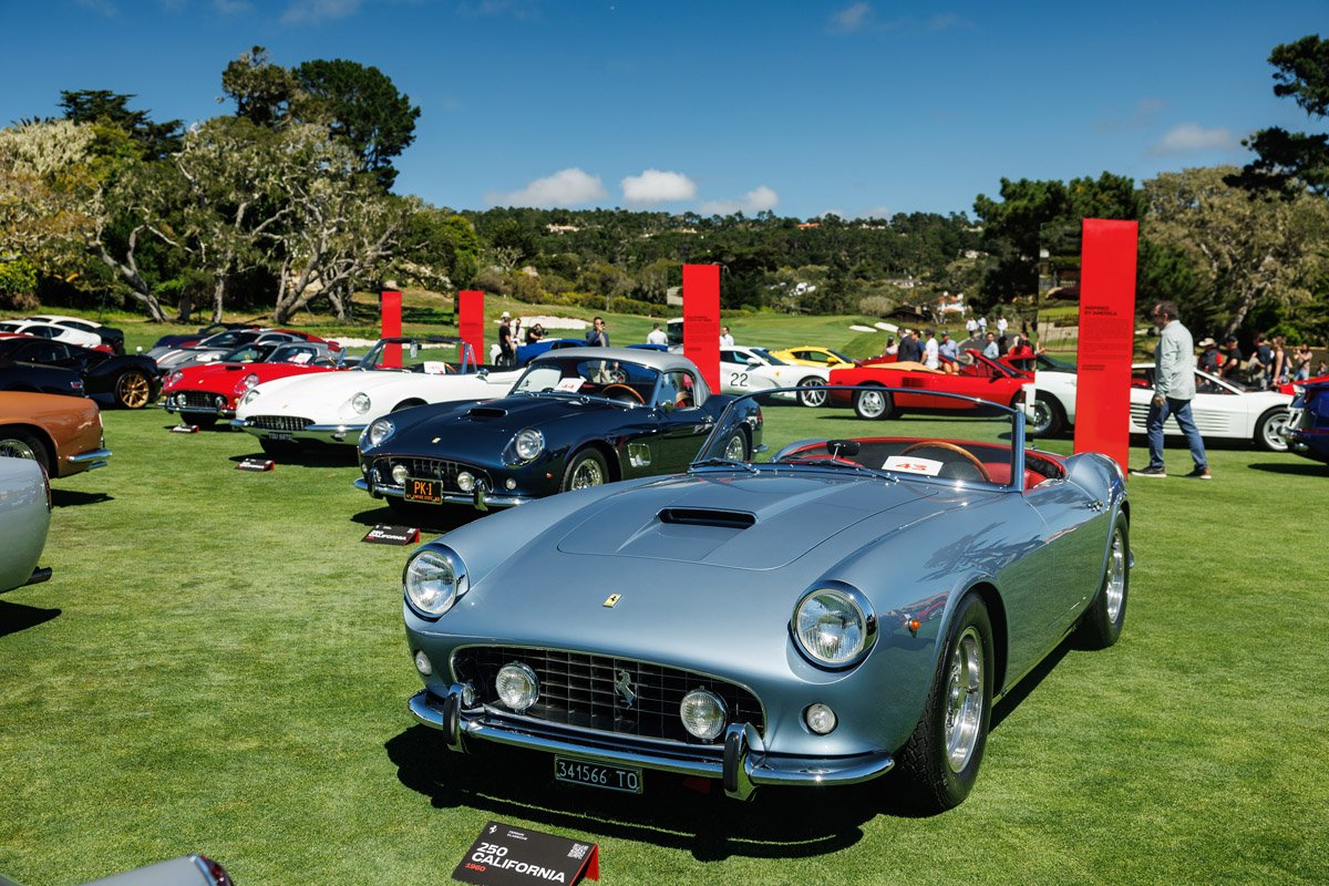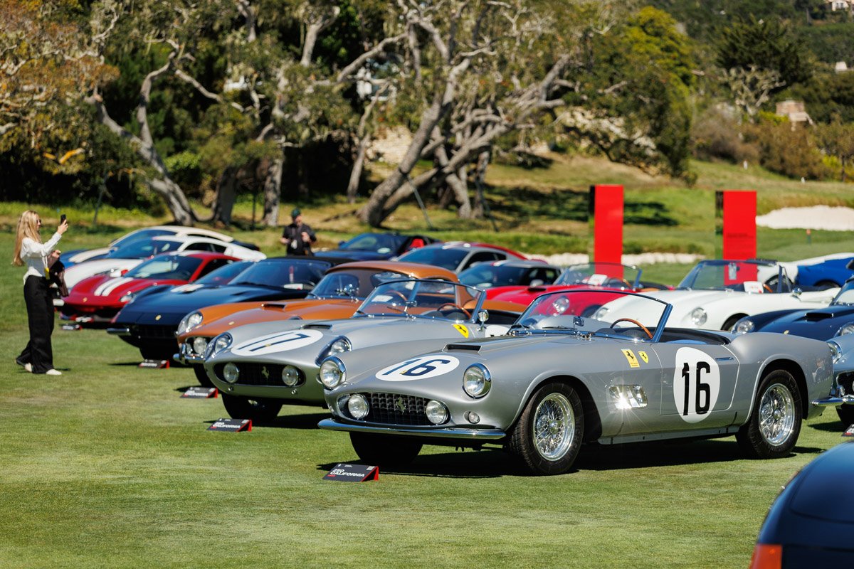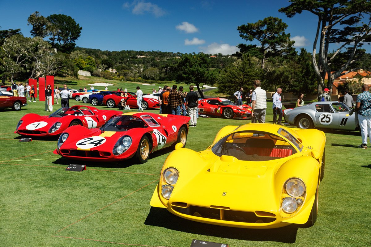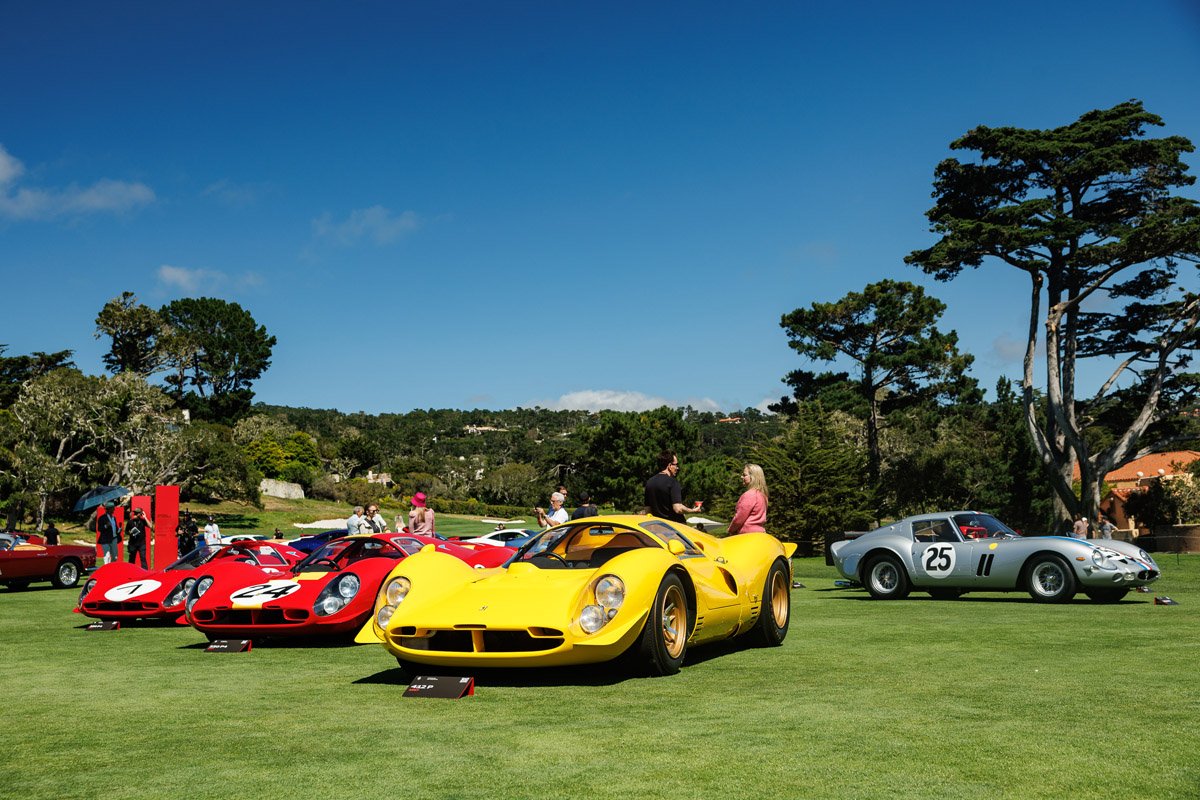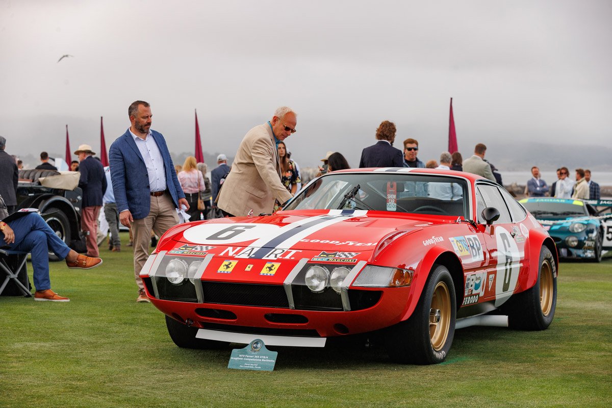 In the later class the Ferrari 250 GTO made its post-restoration debut brought over from the UK by Tom Hartley Jr. for is current owner. After launching a video of the Ferrari Classiche restoration just before the Concours, the car was awarded first in class followed by the road versions of the 250 GT PF Series 1 Cabriolet and a 410 Superamerica. America was also the theme on the first fairway where the Casa Ferrari had their display featuring the history of Ferrari in the US with several Daytonas, California Spiders, Americas and Superamericas as well as the 1967 Daytona 24 Hour race with the three Ferrari 330 P4 and 412 lined up.
