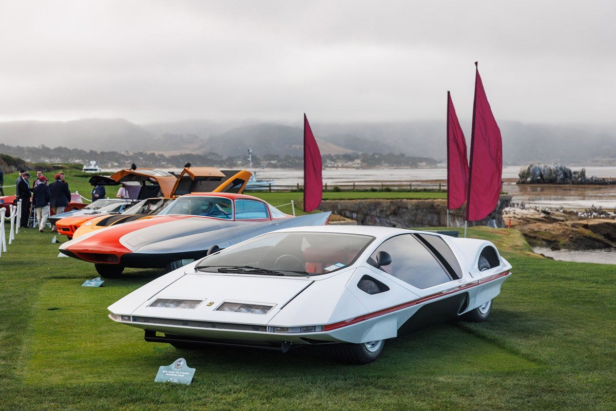 Just next to the racers were two classes of wedge-shaped concept cars, also a novum on the lawn. As Chairman Sandra Button later explained during the awards ceremony, the idea actually arose last year when owner Phillip Sarofim wanted to enter the Aston Martin Bulldog in the Concours but no suitable class was found. So Sarofim was told to enter the car this year in a featured class that would bring up these cars together. Sarofim ended up winning both classes, the newer one with the Bulldog, the older one with the Lancia Stratos Zero concept that ultimately was the runner-up for the Best of Show award.