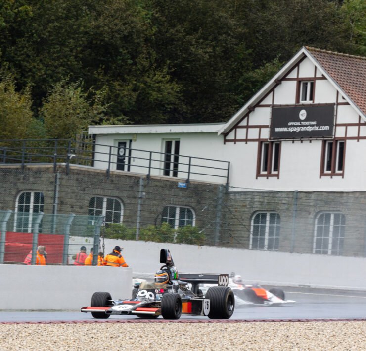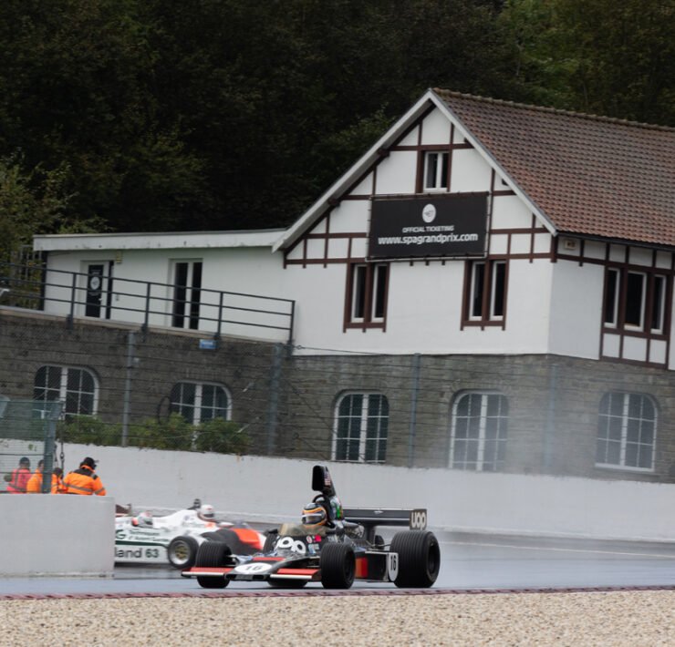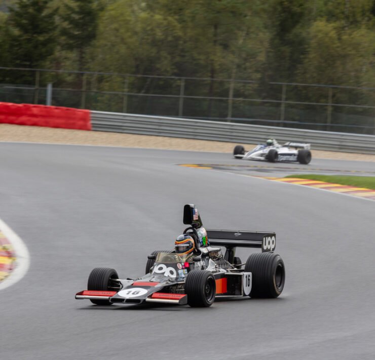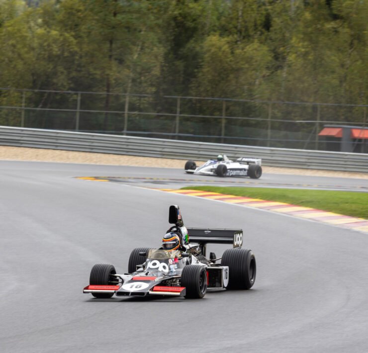 For Thierry Boutsen, this generation of Cosworth-powered F1s precedes the car he made his debut in. “Even if my Arrows had a Cosworth engine as well.” During our chat, the Belgian stresses how much he is here to just have a bit of fun, but in his second race, we see none of that. Boutsen had a troublesome first race, relegating him to the back of the grid for the second race.