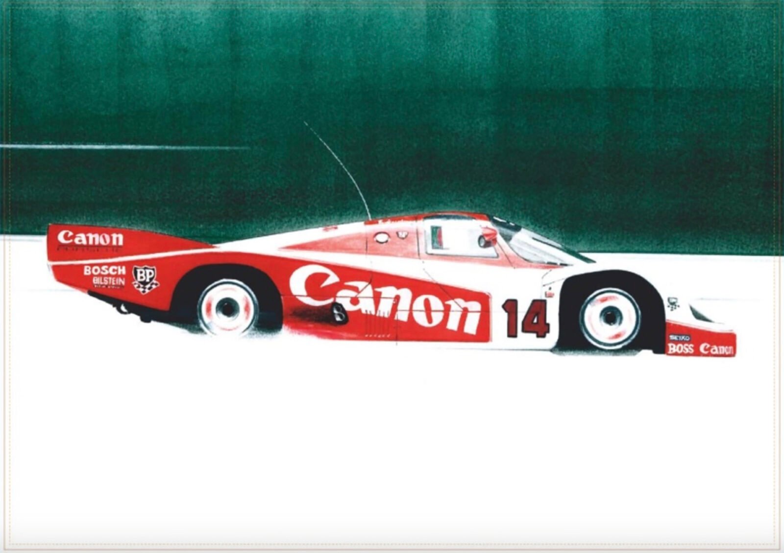 The first one is Peter Steven’s sketch on the 1983 Le Mans-entered Richard Lloyd Racing Porsche 956. Stevens laid out the graphics for the Canon-sponsored car, which has since become one of the Group C Porsches’ most famous liveries. In issue 11, Peter Stevens tells us more about liveries and the Canon Porsche in particular. We kept to an A4 size for this sketch, printed on Munken pure rough paper, to better reproduce the structure of the drawing. Just 100 copies are printed. Available here.