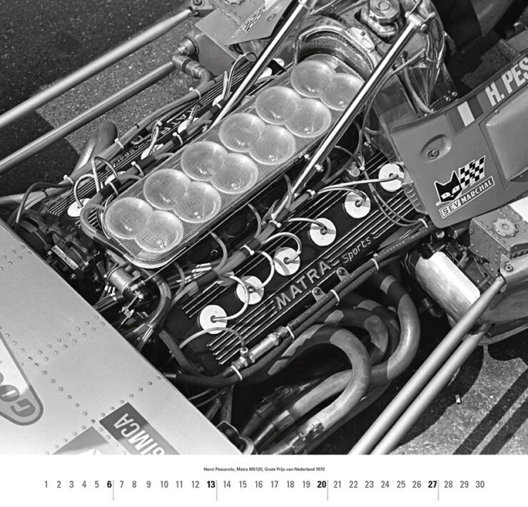 This one is McKlein’s 25th motorsport calendar. Traditionally, we associate McKlein with exquisite photographs showcasing rally cars from the most remote parts of the globe. There is some of that in this calendar, of course, but the McKlein archive is much richer than that. That is nowhere clearer than in the cover image, with Brian Redman ‘sending’ the Porsche 908/03 in the 1970 Nürburgring 1000 Km, where he and Jo Siffert would ultimately retire.