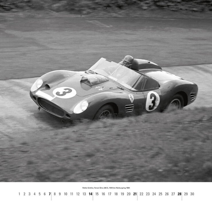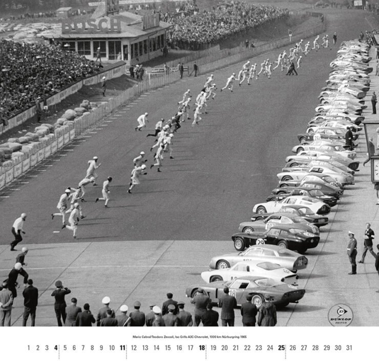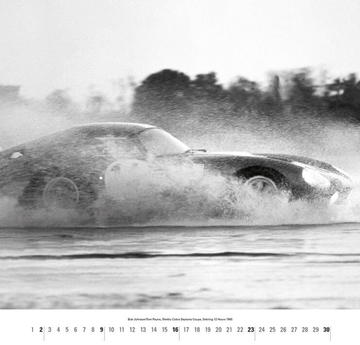 That leaves 24 other images, which means there are two image options for each month. McKlein in their selection have tried to stick to 40-, 45-, 50-, etc years relevance. The images date back to the fifties, sixties and seventies. If we have to pick two images that spike our imagination, it’s the 1950 Pescara Grand Prix and the deluge that hit the 1965 Sebring 12 Hours. Motorsport like it simply does not exist anymore.