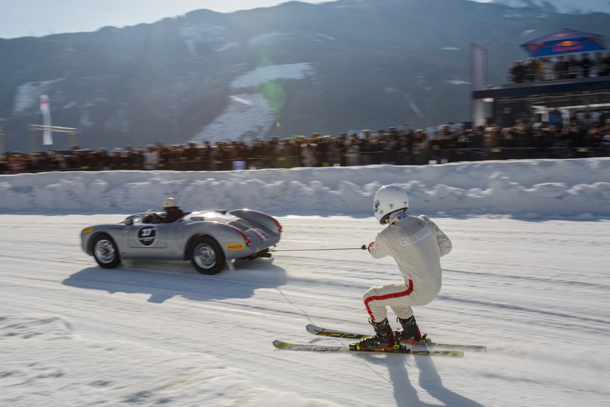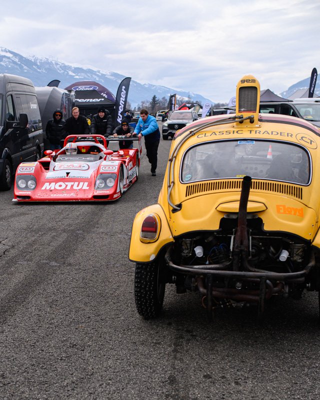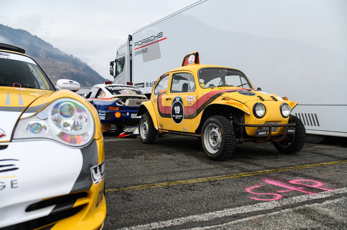 Fortunately, we had our photographer friend Máté Boér present at both. And in Zell-am-See, he was much more than that. Together with Michael Gross, another friend of Tazio, he ended up winning the spectacular skijoring event, with cars pulling skiers along the track. Made all the more spectacular when Michael rolled his Baja Beetle over the finish line. The result was mostly damaged pride, fortunately. The result – the win, we mean, should surprise no one, as Michael and Máté form a well-honed team. You can see them both in action in the famous Grand Tour Scandinavian special.