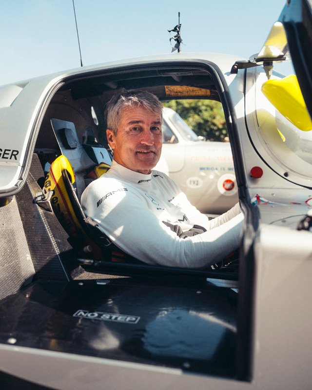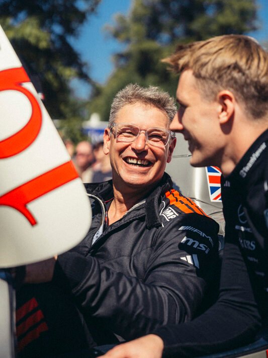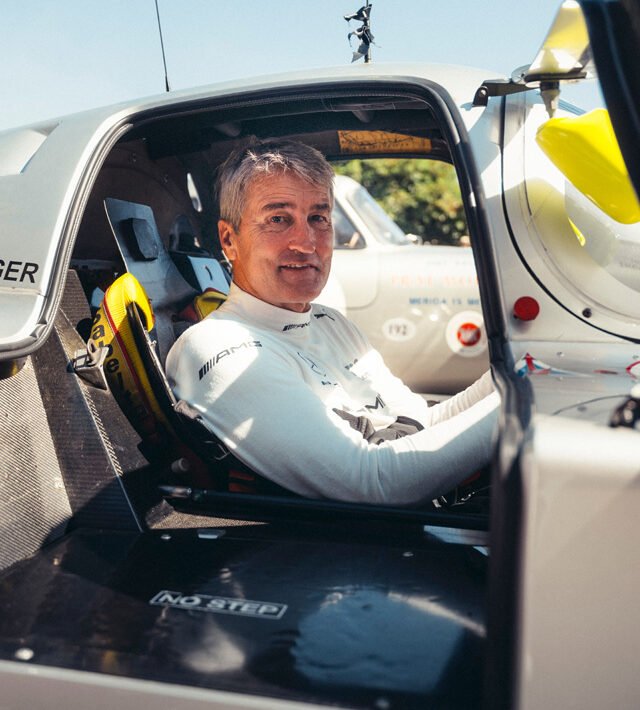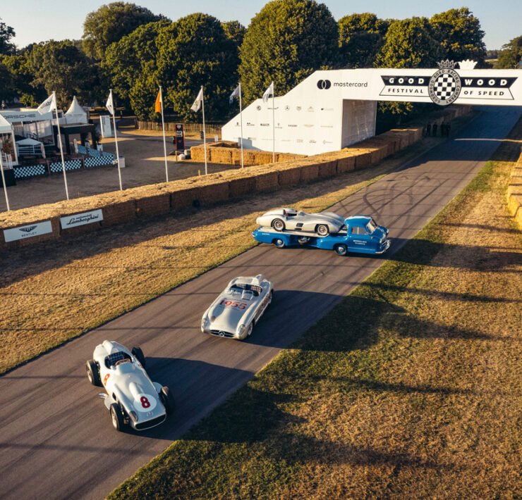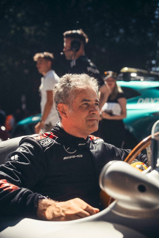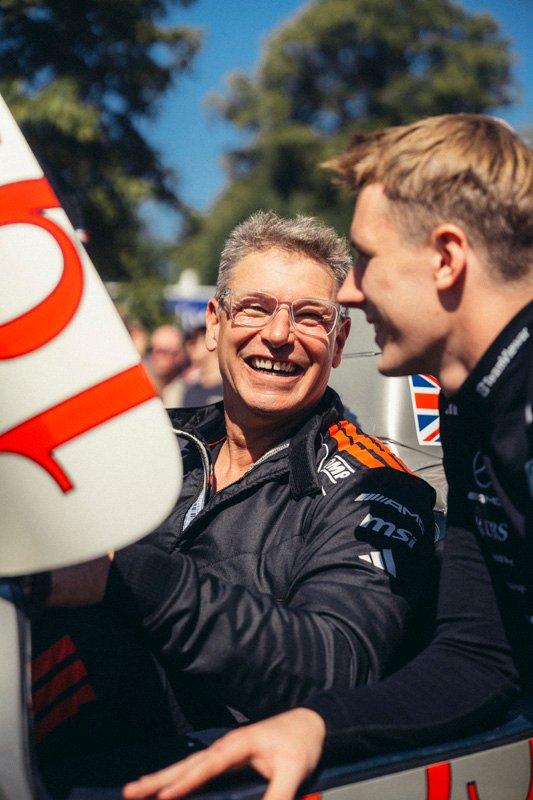 Mercedes-Benz Classic beim Goodwood Festival of Speed 2025. Mercedes-Benz Classic Markenbotschafter Bernd Mayländer am Steuer des Mercedes-Benz 300 SLR Rennsportwagens (W 196 S) von 1955. Mercedes-Benz Classic at the Goodwood Festival of Speed 2025. Mercedes-Benz Classic brand ambassador Bernd Mayländer at the wheel of the 1955 Mercedes-Benz 300 SLR racing sports car (W 196 S).