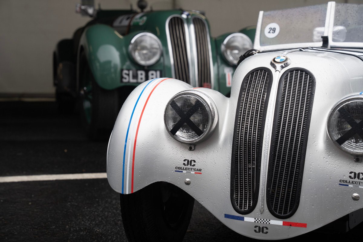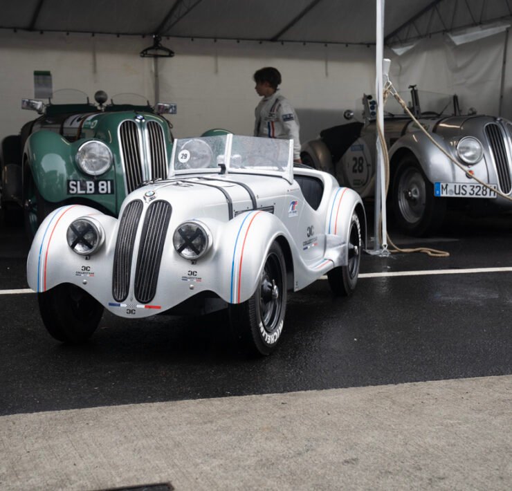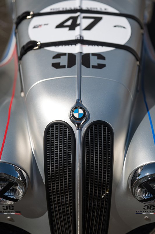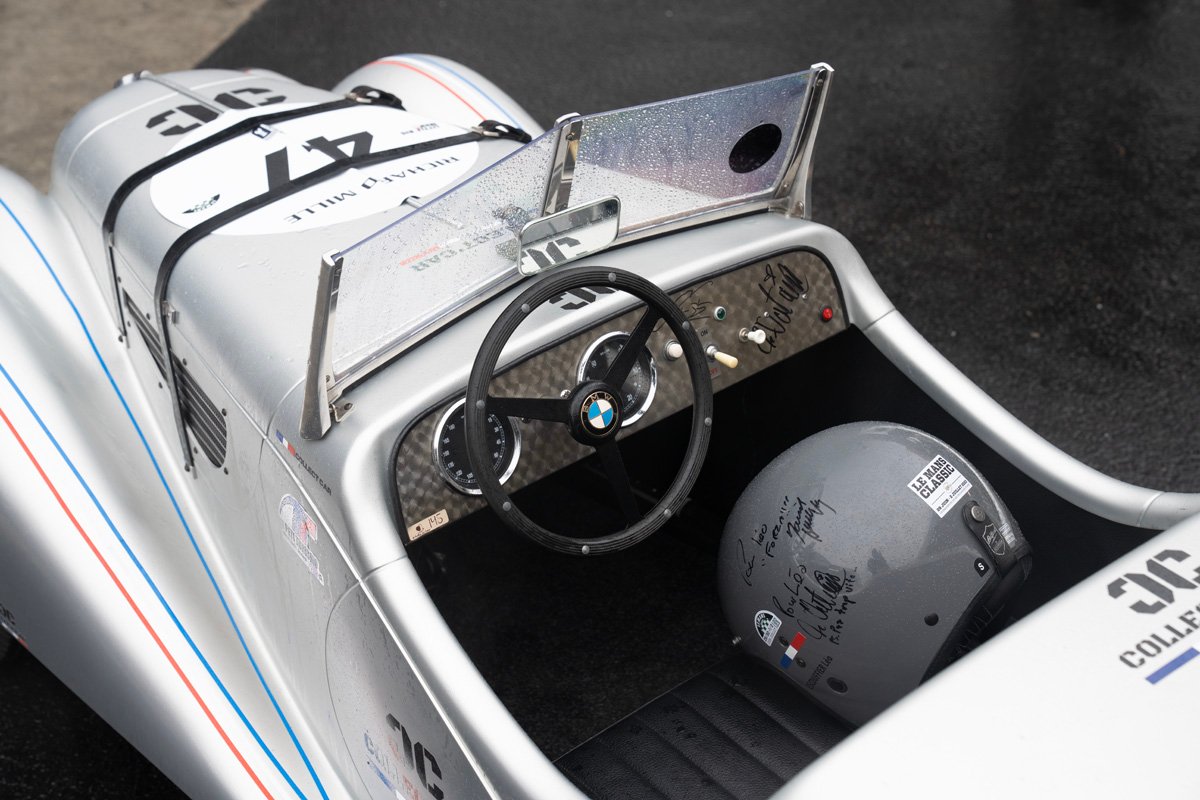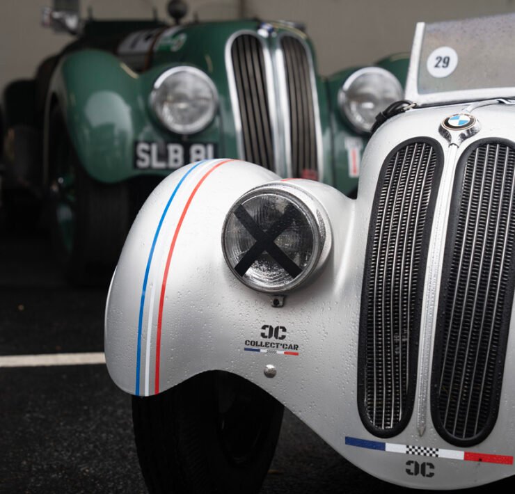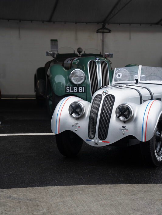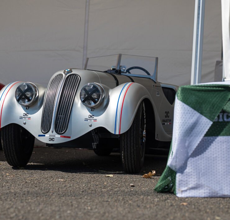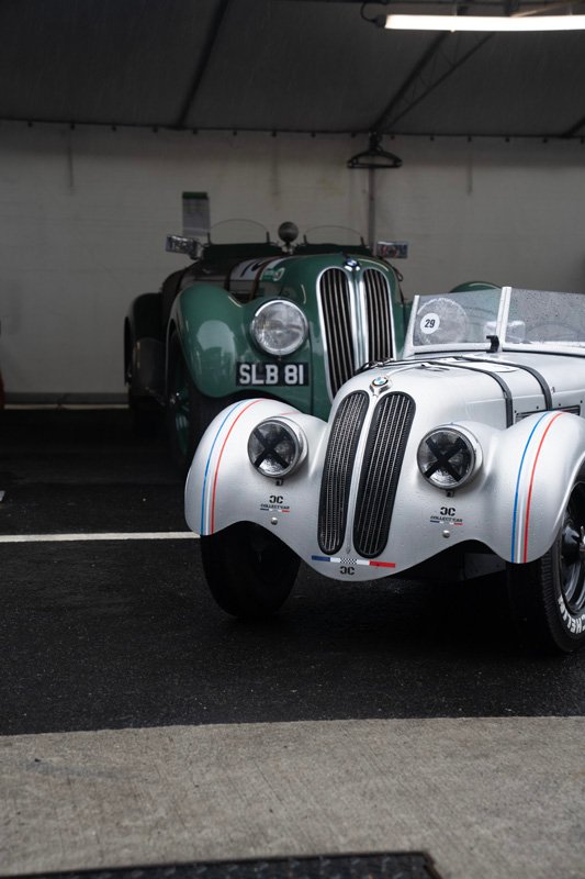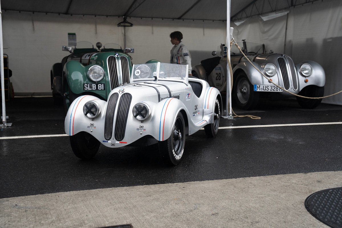 Leo is cool as McQueen in his race suit, posing alongside the real article, the BMW 328 Brian Rivett and Andy Prill are sharing in this year’s Le Mans Classic. He’s not the least bit impressed, zooming through Paddock 1 behind the pits on his way to the photoshoot. It’s a sight to behold, that little 328 dashing through a paddock full of Bugattis, Alfa Romeos, and of course, BMW 328s.