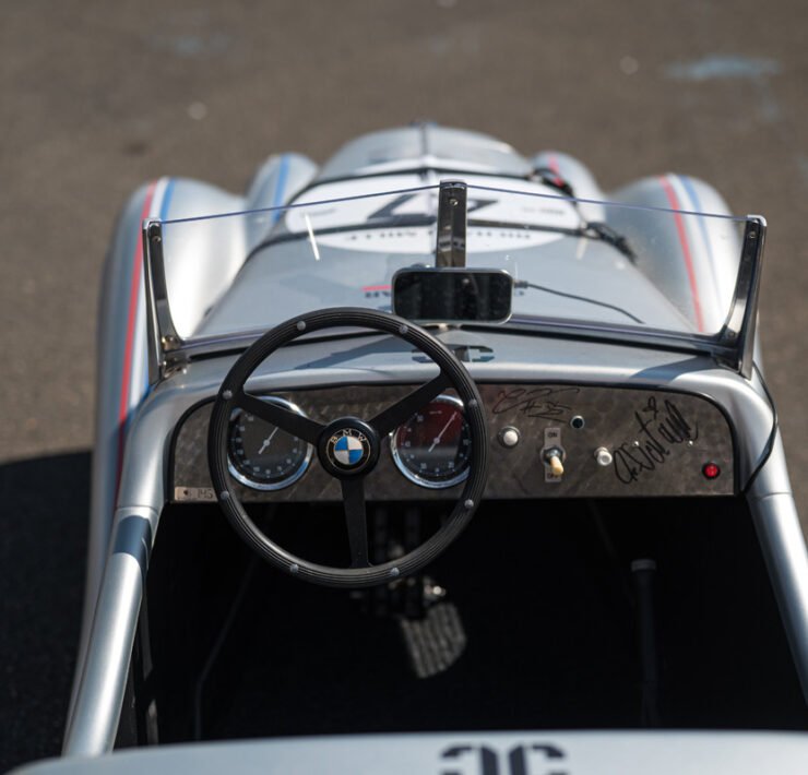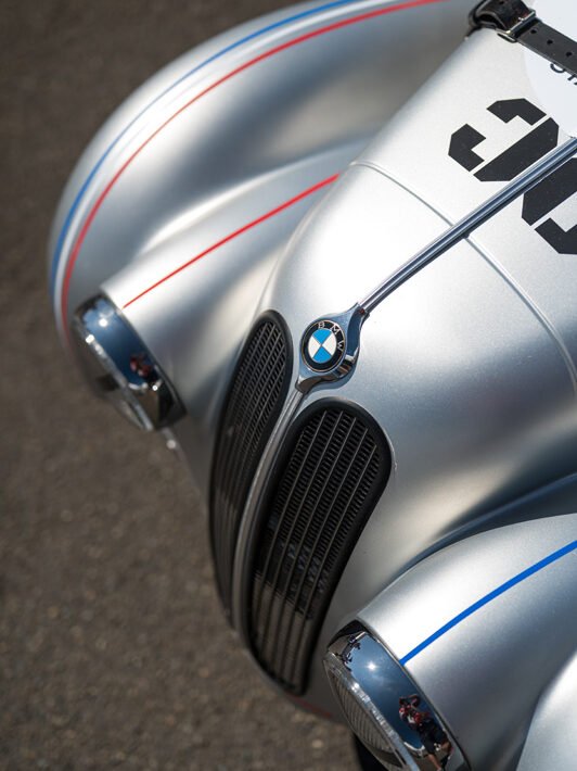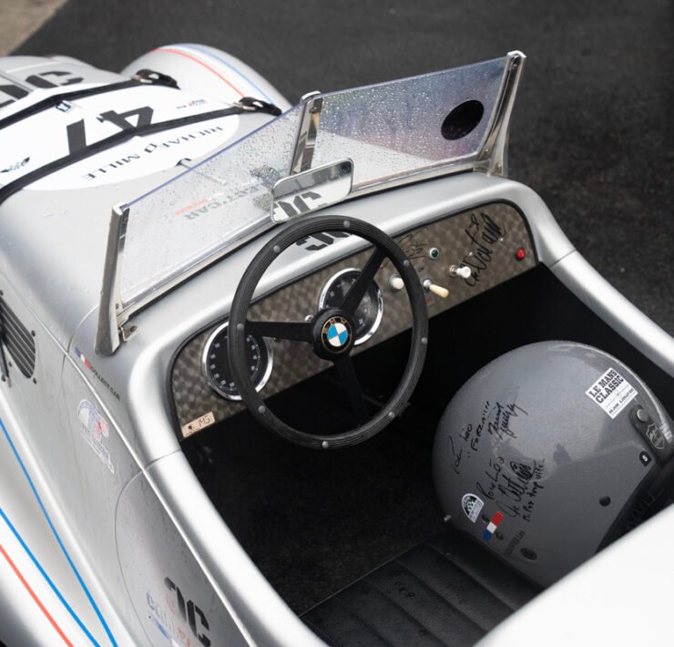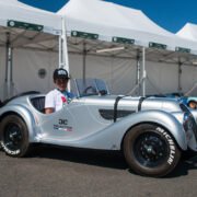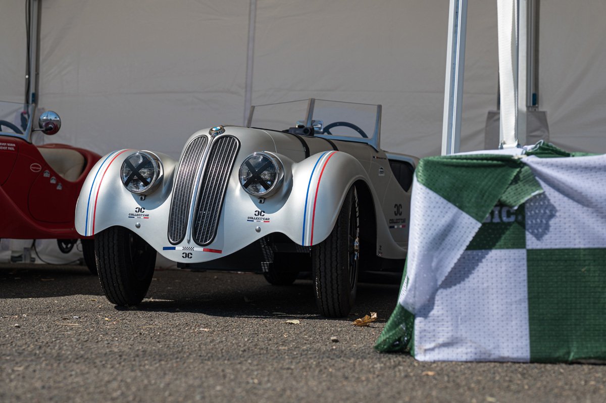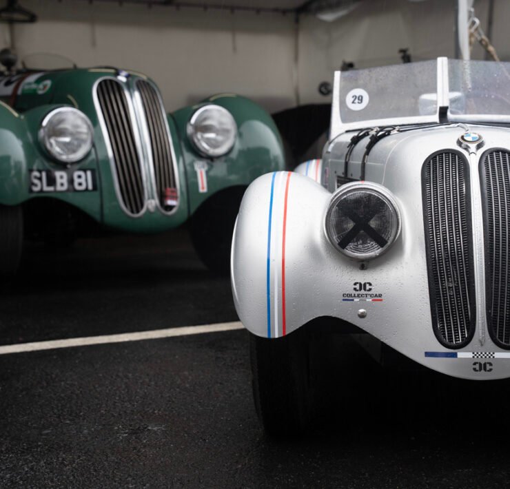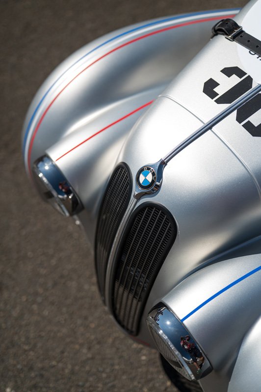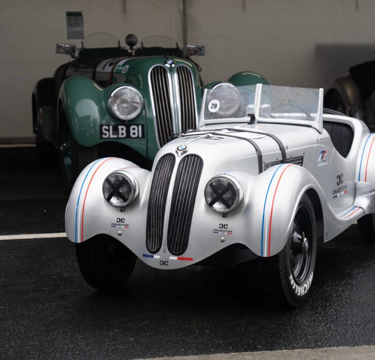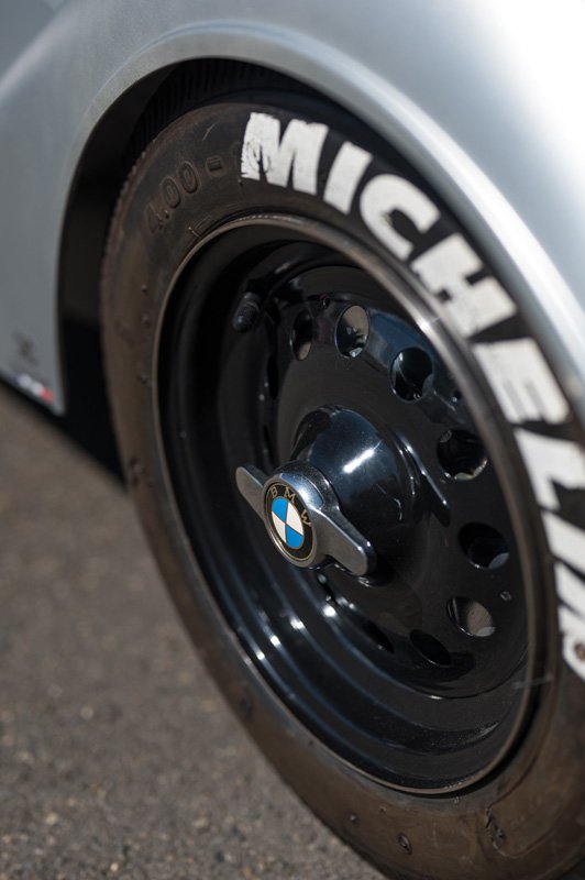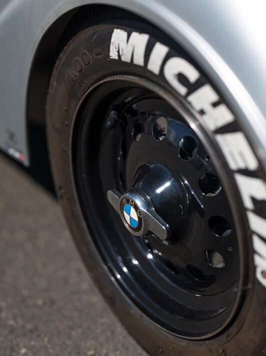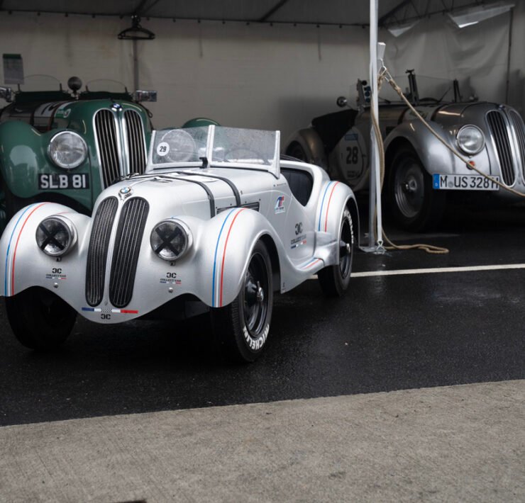 Leo is cool as McQueen in his race suit, posing alongside the real article, the BMW 328 Brian Rivett and Andy Prill are sharing in this year’s Le Mans Classic. He’s not the least bit impressed, zooming through Paddock 1 behind the pits on his way to the photoshoot. It’s a sight to behold, that little 328 dashing through a paddock full of Bugattis, Alfa Romeos, and of course, BMW 328s.
