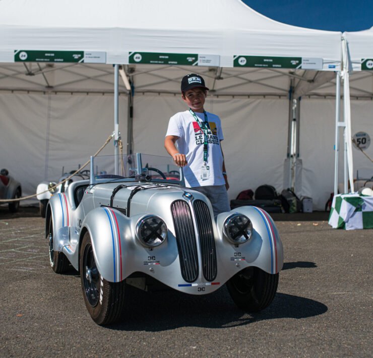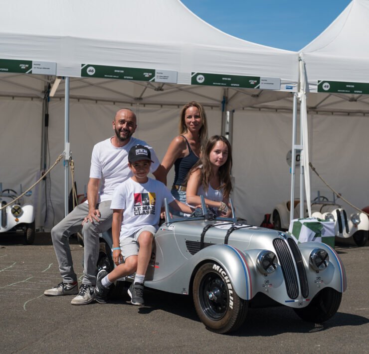 At Le Mans Classic, the Little Big Mans race is just as popular as the main events. Close to one hundred kids performing the traditional running start on the grid and zipping away in their miniature cars, it’s the stuff Instagram was invented for. For a company like Collect’car84, Little Big Mans is the big opportunity to showcase the qualities of their BMW 328 junior car. Leo Escouffier is proud he is the one that gets to show his dad Sébastien’s efforts.