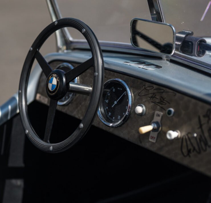 It would be wrong to catalogue these junior cars under toys. They are the result of long hours in the shop and tons of passion to create possibly the most accurate scale recreation of – in this case – the 1930’s BMW 328. “I took over an existing project,” Sébastien Escouffier tells us. “De la Chapelle originally made 6/10-scale versions of the BMW 328, with a small petrol engine. Later on, Bérard took on the production, who then offered it to me. The 328 can be powered by a combustion engine, as the project was initiated, but I find it more interesting with an electric engine.”
