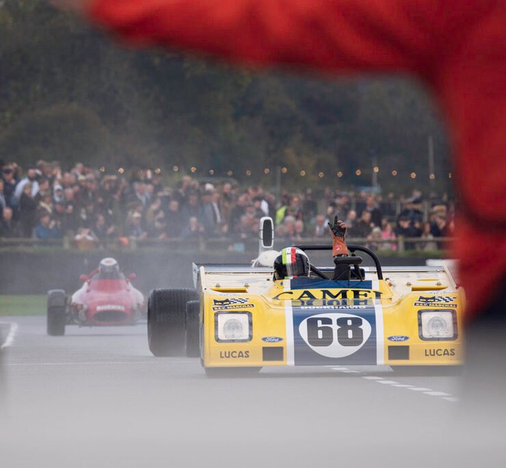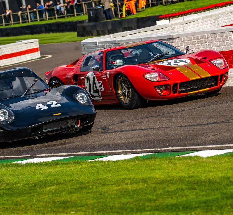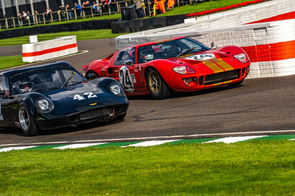 The race was neutralised early on after Chris Goodwin spun his Lotus 23B off and hit the bank. Former Audi and Porsche works Le Mans driver André Lotterer made sure the audience would not forget his participation at Goodwood. In one sense by setting fastest lap of the event in a Ford GT40 (1’20”853) and in another sense by recovering from a monumental spin with a heavy dose of the right foot and tyre smoke all over the place. No harm done, but what a moment it was.