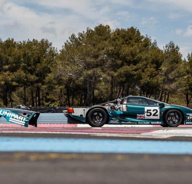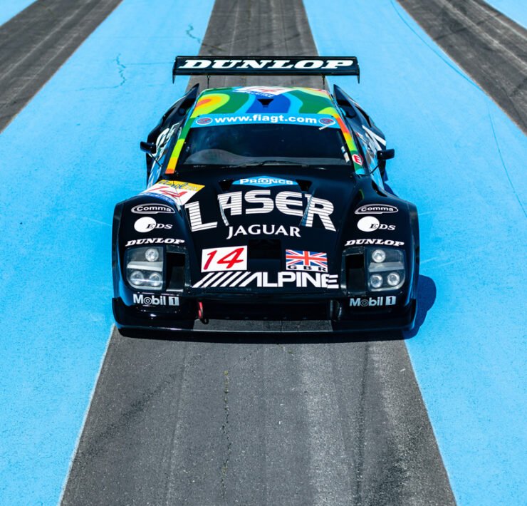In racing too, the Jaguar XJ220 would become controversial. It was one of the first of a generation of new GT racers based on supercars like the Ferrari F40. Jaguar trusted TWR with a racing program, that saw three XJ220s appear at the Le Mans 24 Hours in 1993. This car, chassis 3, was driven by Paul Belmondo, Jay Cochran and Andreas Fuchs. The latter would experience a full tyre blow-out on the Hunaudières straight, spinning at high speed without hitting anything. A shame, the car was leading its class at that time. It would later abandon due to damage to the cooling system. Chassis 2 would win its class, only to be disqualified after the race because the Jag’s catalytic convertors were missing.