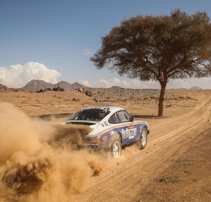 The Dakar rally has always been a mesmerizing prospect. Created by Thierry Sabine in 1979 as an adventurous run between Paris and Dakar, the capital of Senegal, the Paris-Dakar rally quickly grew into a worldwide sporting event. Held in early January, it held the envious position of being the only top motoring event in the winter months, easily capturing tv time and global audiences. When Jacky Ickx, winner of the 1983 Paris-Dakar, convinced Porsche to take part in 1984, this opened the gates to full-on factory efforts on the legendary desert raid. Porsche, Peugeot, Citroën and Mitsubishi brought in Group B-like prototypes after Group B was banned from the rally stages after 1986.