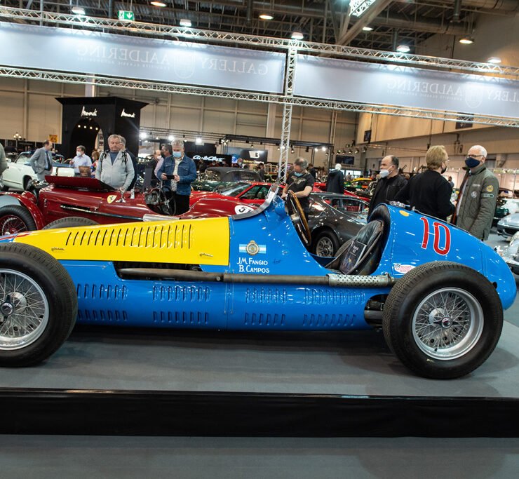 But one of the most striking cars on display was undoubtedly the 1949 Maserati 4CLT in which Juan Manuel Fangio made his debut in Europe. The car carried the national colours of Argentina.