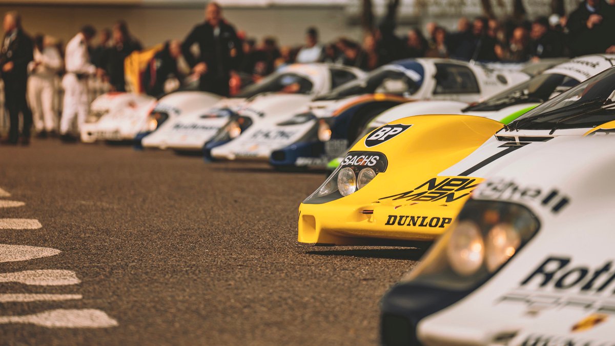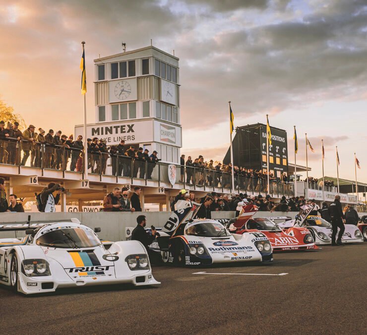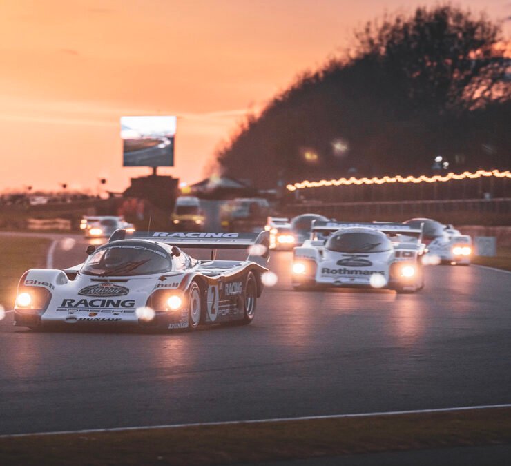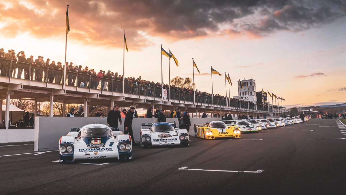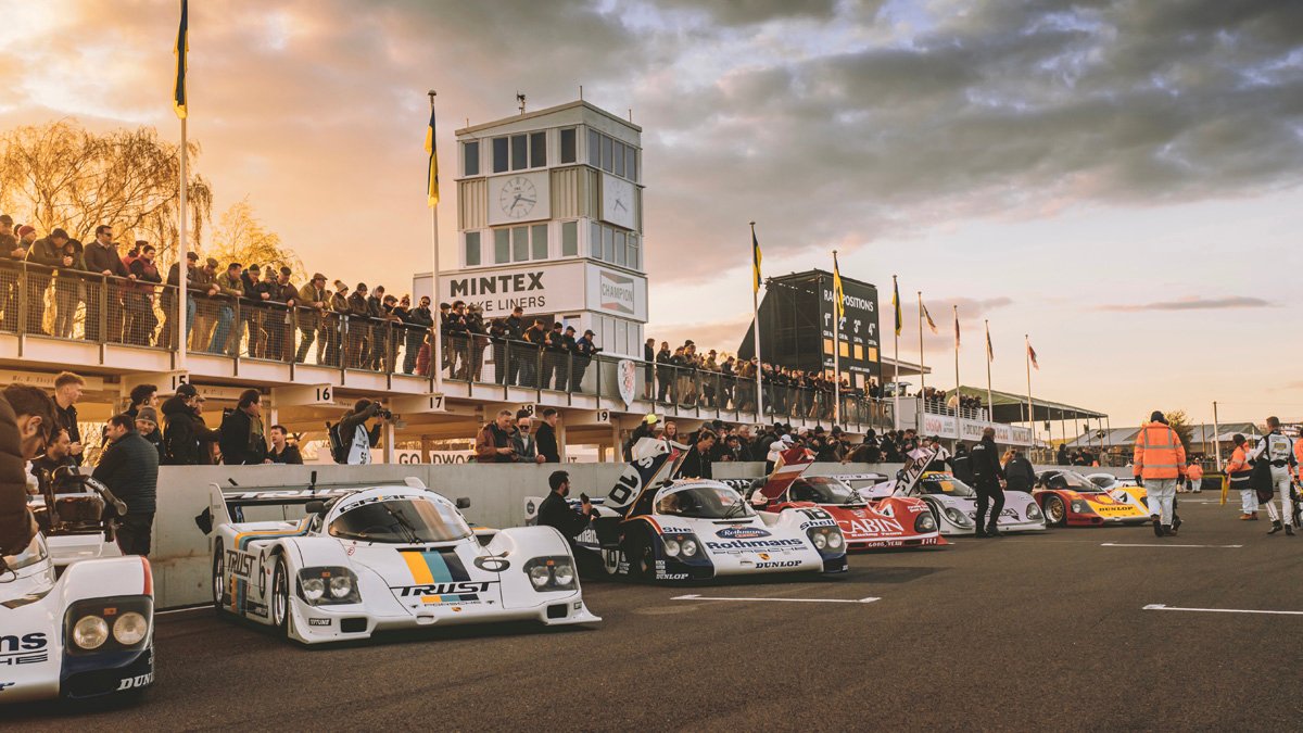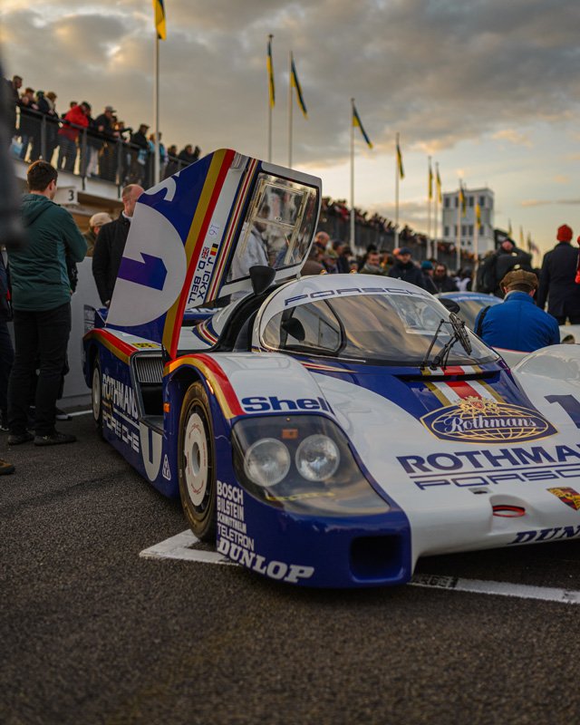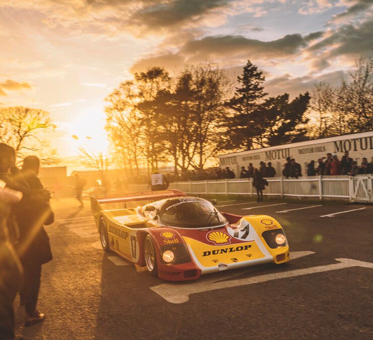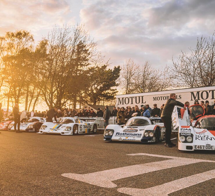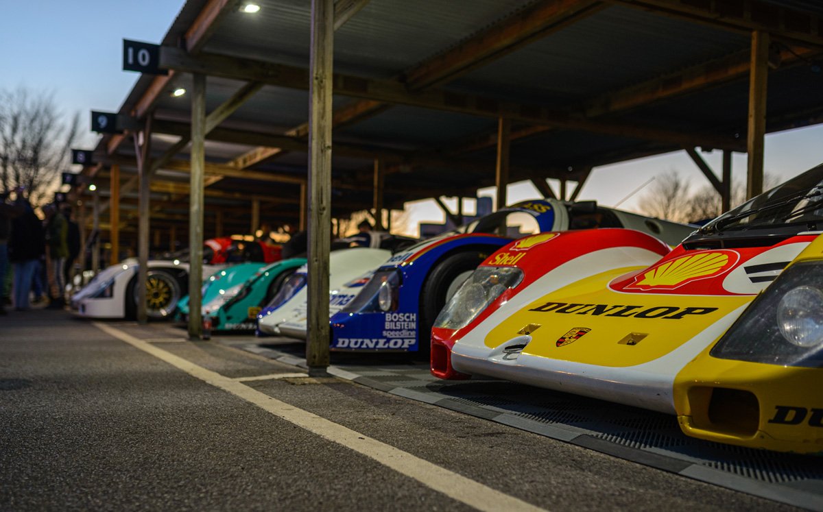 The parade of Porsche 956s and 962s, headlights piercing through the beginnings of night, was one of the highlights of Goodwood’s 79th Members’ Meeting. A magical moment.