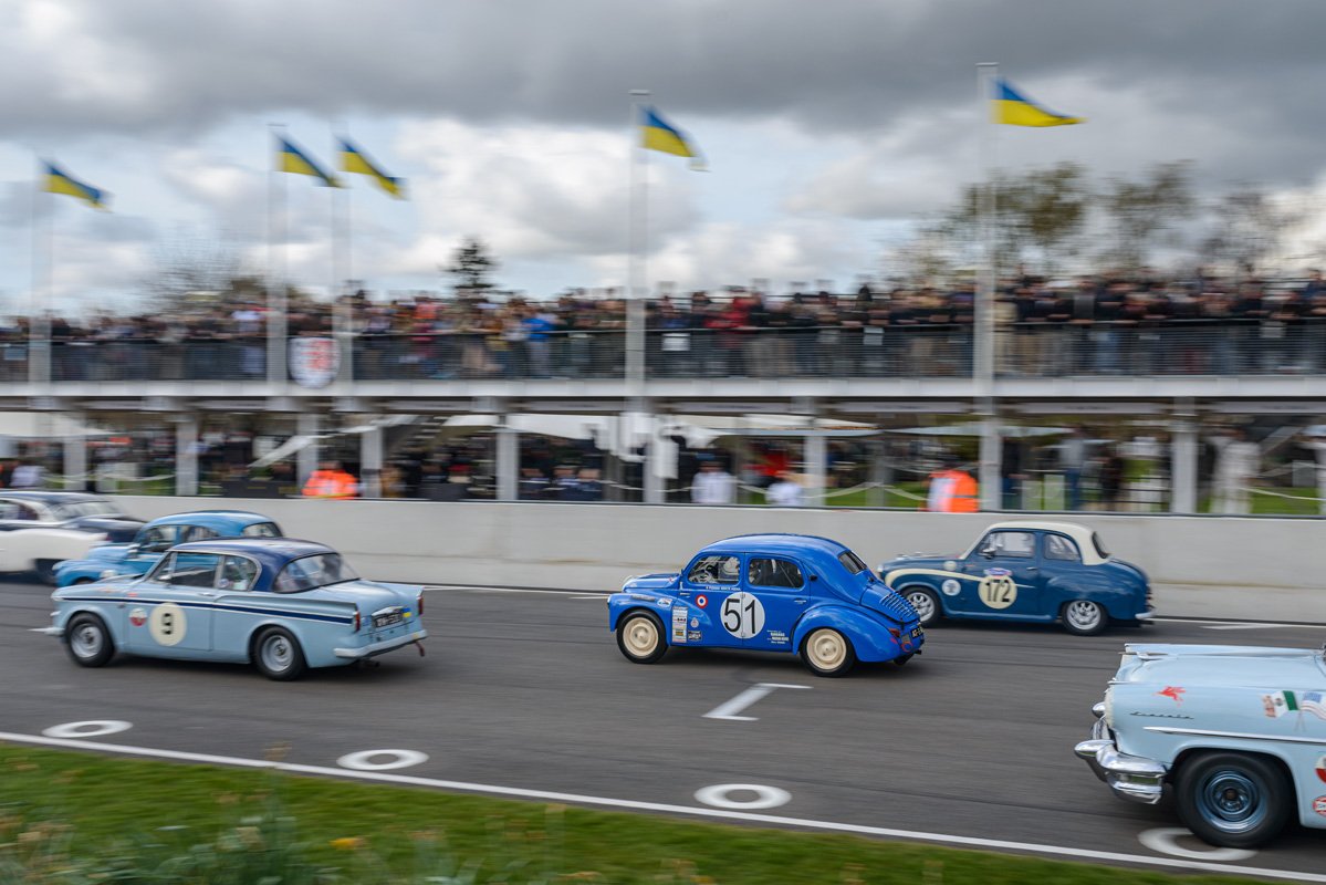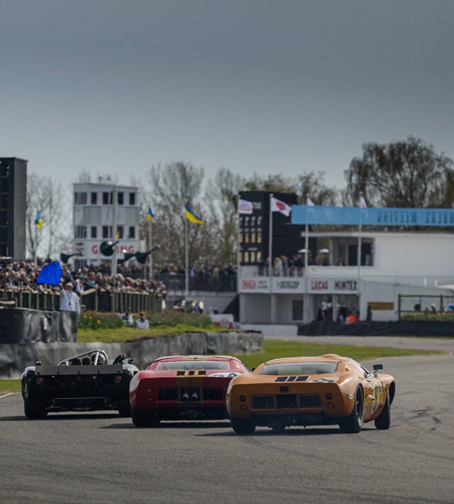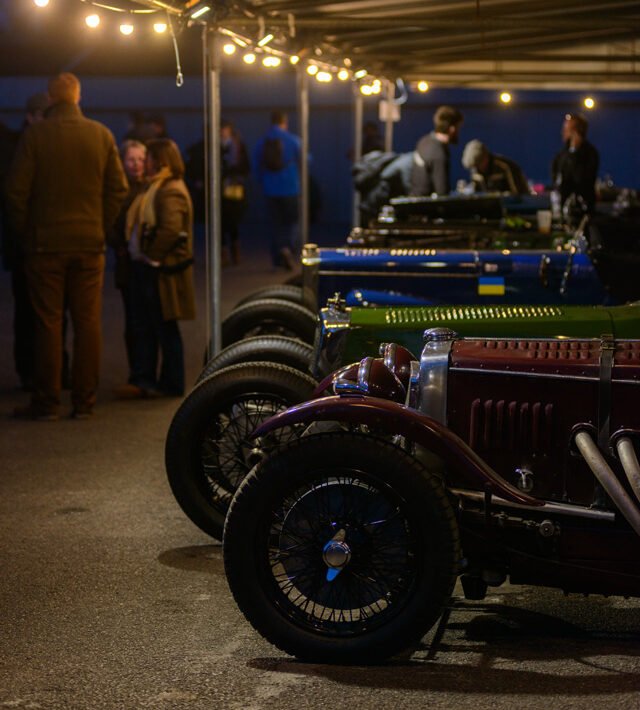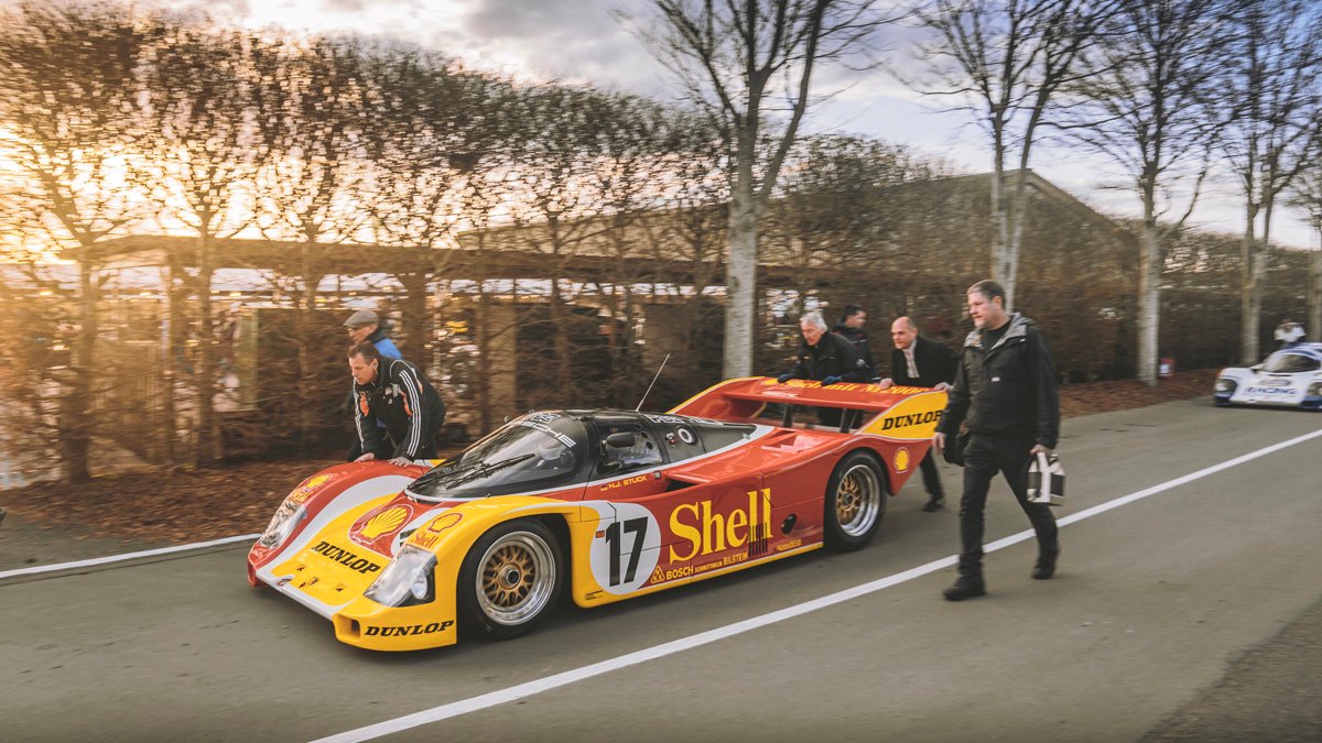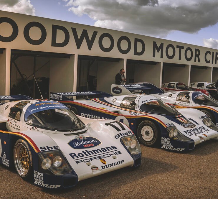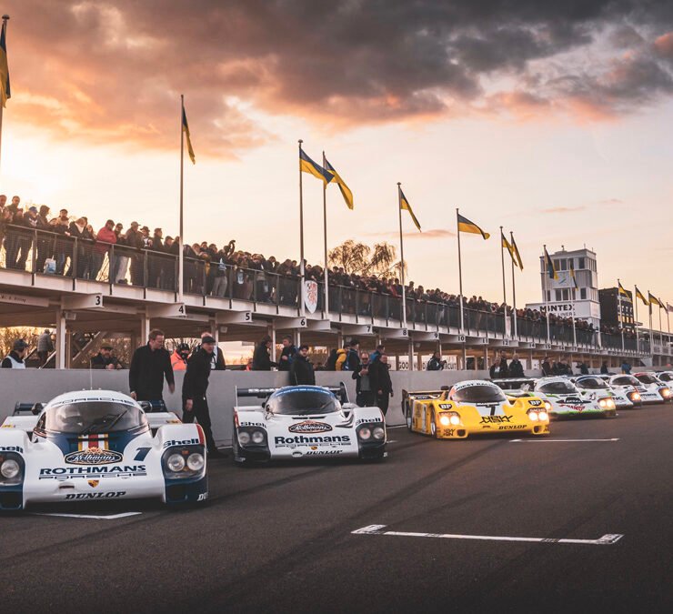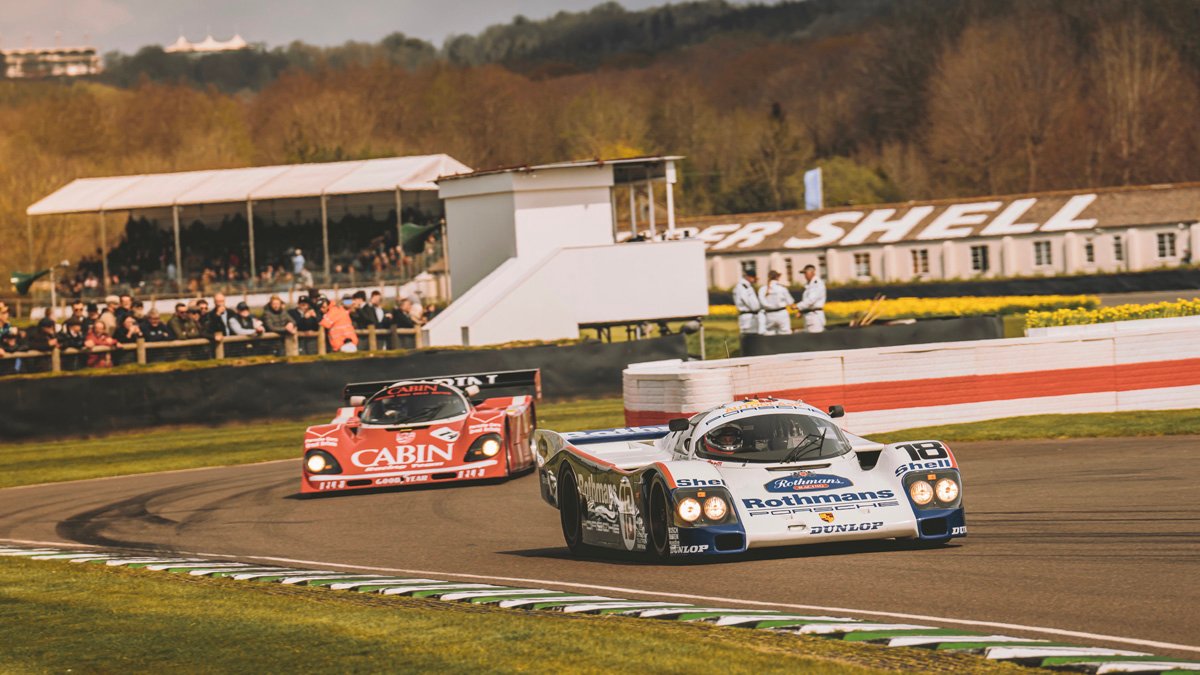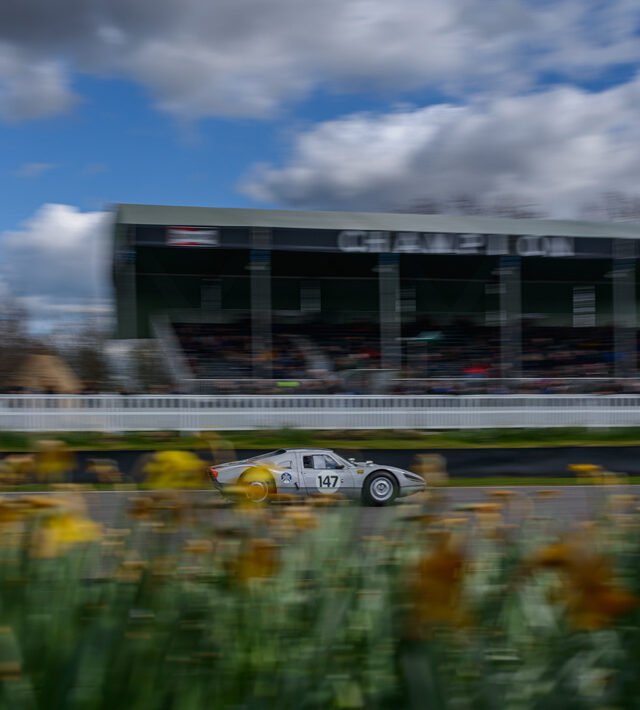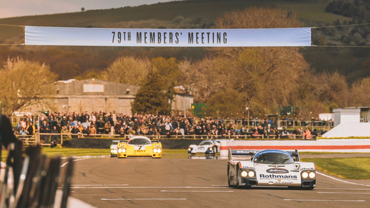 The parade of Porsche 956s and 962s, headlights piercing through the beginnings of night, was one of the highlights of Goodwood’s 79th Members’ Meeting. A magical moment.