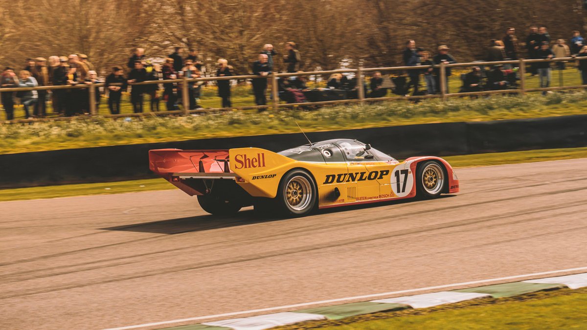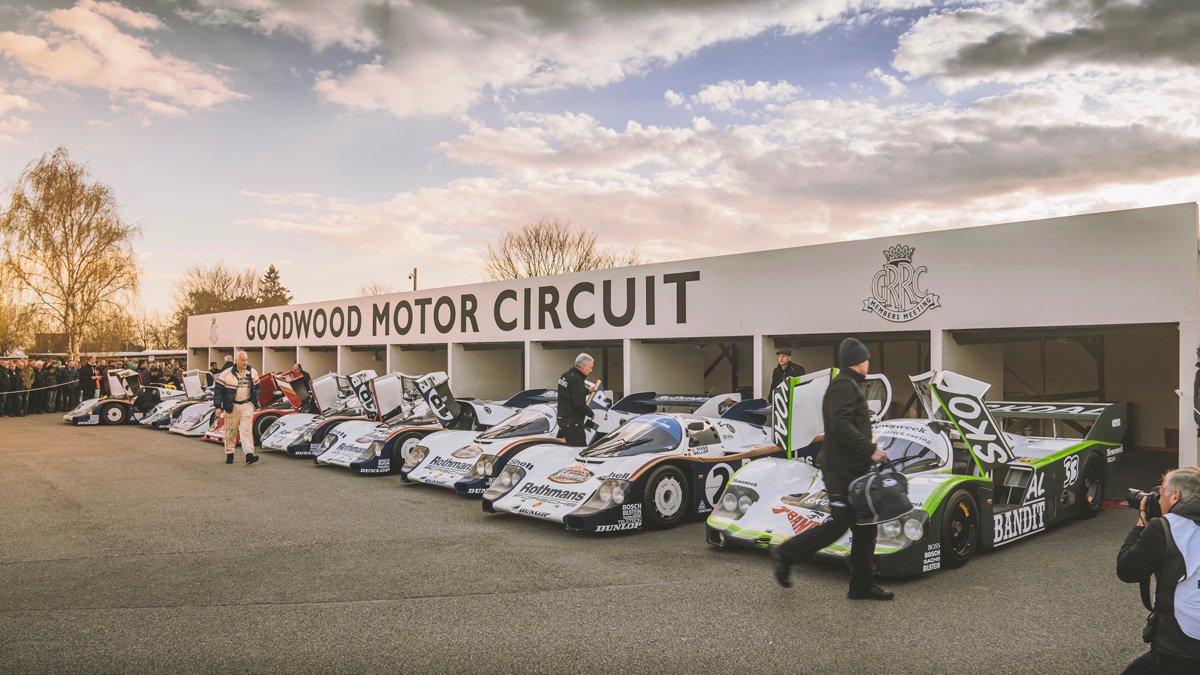 Group C is forty years old, and it was also the fortieth anniversary of the Porsche 956’s first appearance at the Le Mans 24 Hours. The Porsche 956 and its successor, the 962, are the defining Group C cars. Consequently, a bit of a party at the 79th Goodwood Member’s Meeting was easily justified.
