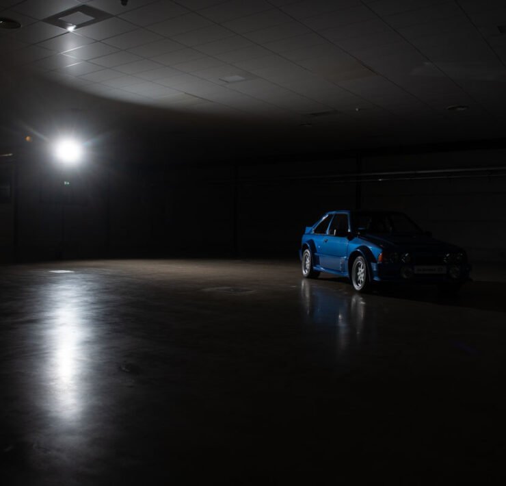 Anyhow, we are here, because we wanted to get a close look at a car that is considered a unicorn: the Ford Escort RS1700T. Before the Ford RS200 came out, Ford had been working on a Group B world rally car project around the new Ford Escort. The official story has it that when Audi came to rallying with the four-wheel drive Quattro, Ford simply gave up on the project. But, of course, there is more to the story. Much more.