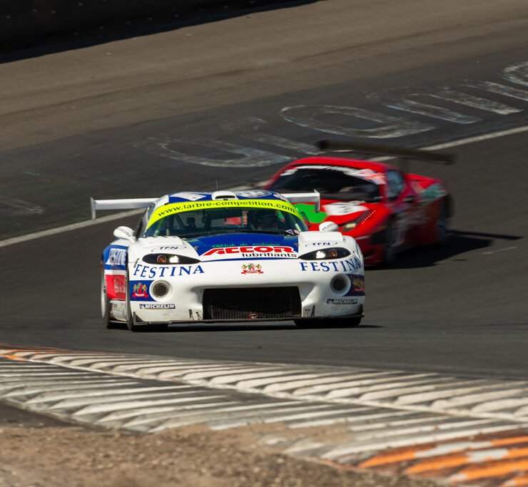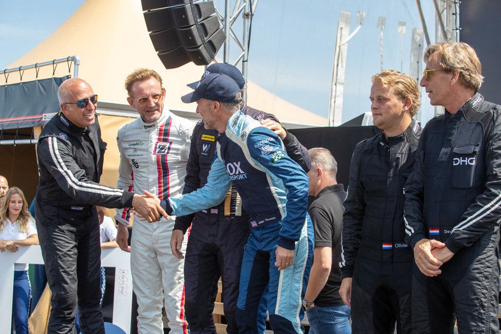 In the Masters Sports Car Legends, father and son David and Olivier Hart managed to get their Lola T70 M3B in front of Tom Bradshaw’s Chevron B19 for the win. Julian Thomas and Calum Lockie in their Shelby Cobra Daytona Coupé took victory in the 90-minute Masters Gentleman Drivers race, one lap ahead of Bernhard van Oranje and Tom Coronel in their Cobra Daytona Coupé and David and Olivier Hart in a Bizzarini 5300 GT.
