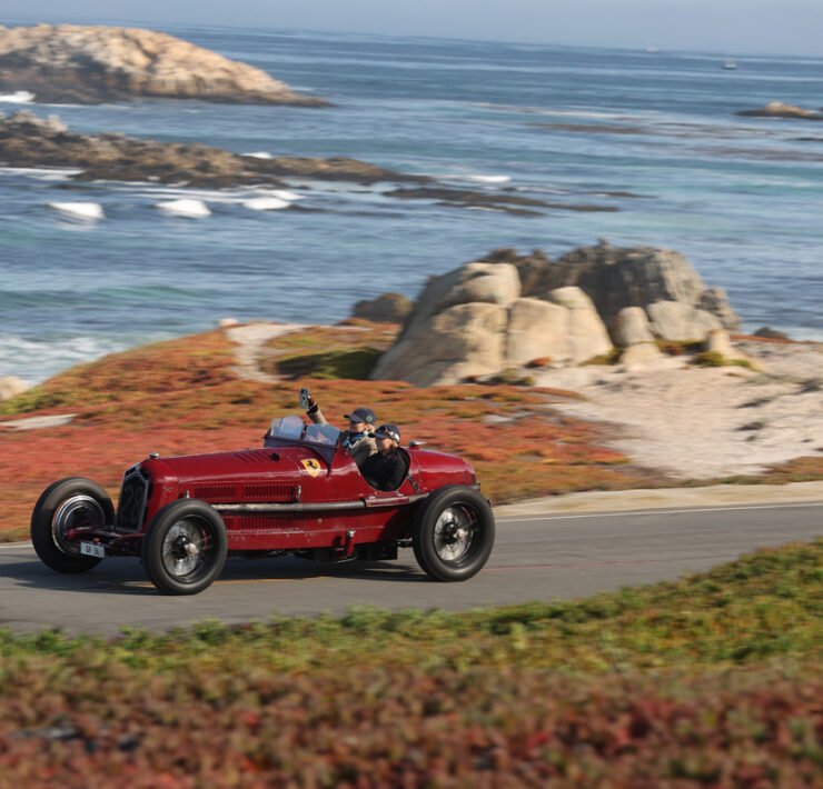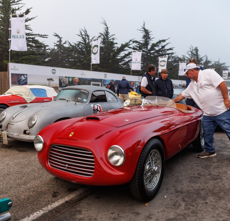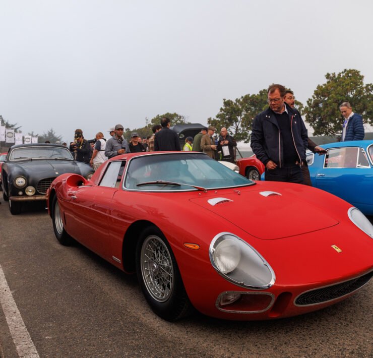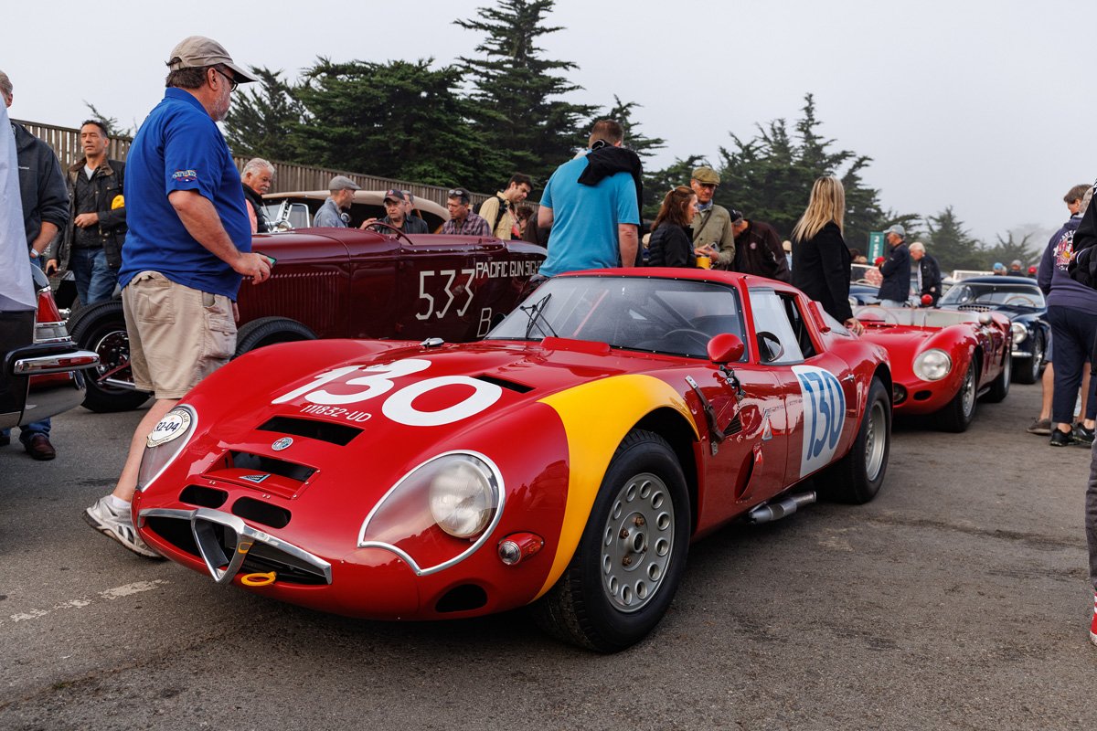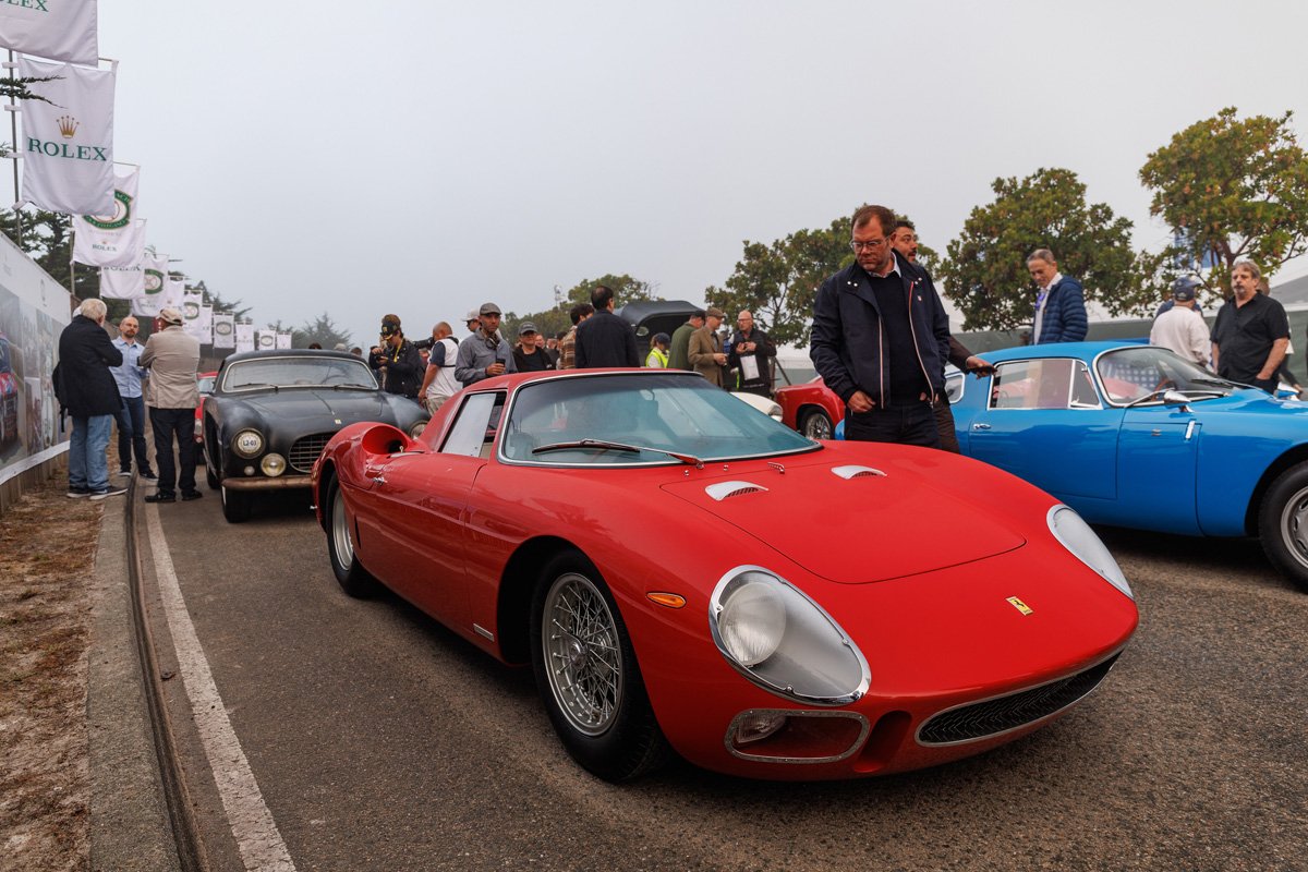Alfa Romeo’s rich history unfolded itself, with an 8C Monza passing by, an 8C Touring Spider and a TZ2. The winner of the Concours is announced on Sunday. 100 Years of Le Mans (in 2023) is one of the classes, and so is the Alfa Romeo 8C2300. Pebble focuses on the Italian 8V or Otto Vu as well. There is no separate class for Ferrari, but of course the brand is well represented in many of the different classes.