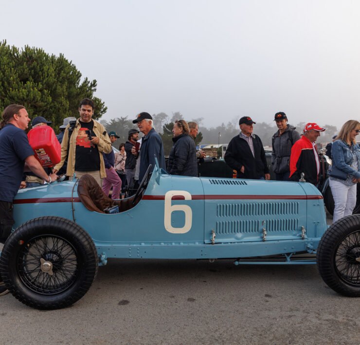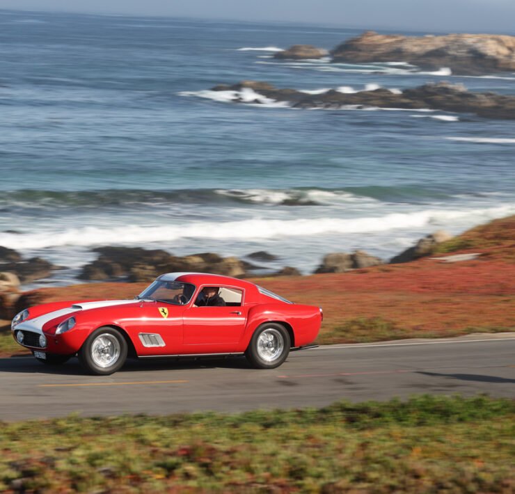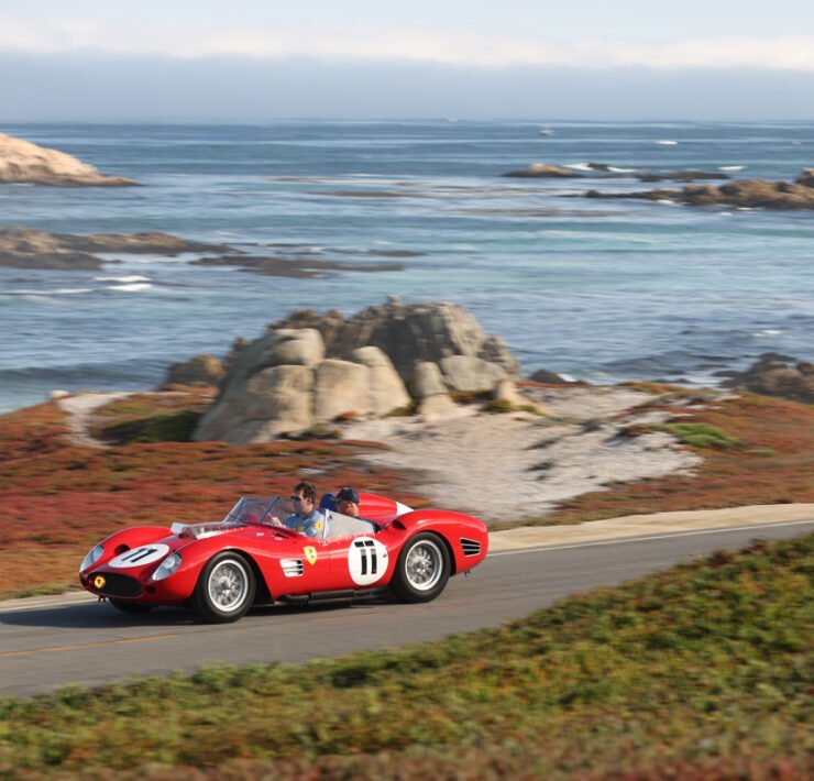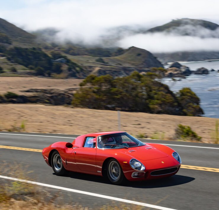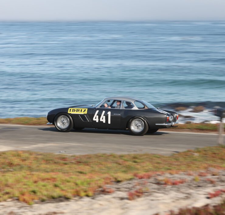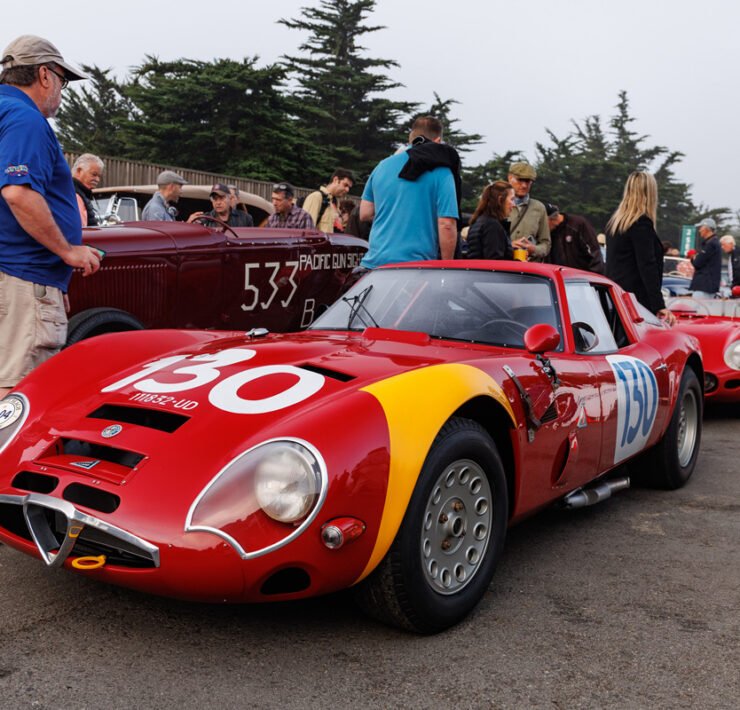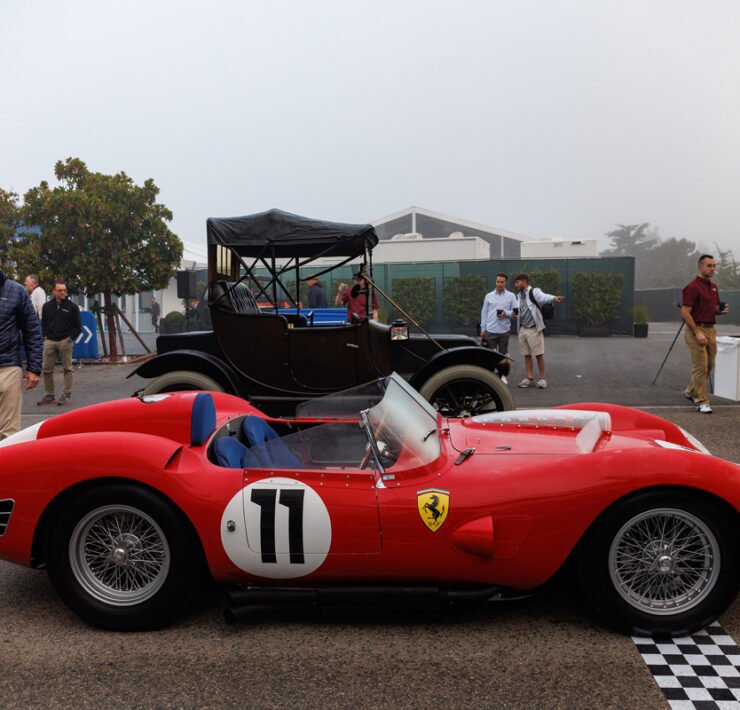 Alfa Romeo’s rich history unfolded itself, with an 8C Monza passing by, an 8C Touring Spider and a TZ2. The winner of the Concours is announced on Sunday. 100 Years of Le Mans (in 2023) is one of the classes, and so is the Alfa Romeo 8C2300. Pebble focuses on the Italian 8V or Otto Vu as well. There is no separate class for Ferrari, but of course the brand is well represented in many of the different classes.