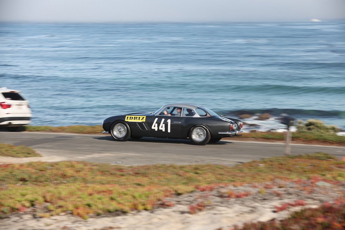 Good thing Peter Singhof knows all the spots. His images of the Tour d’Elegance, the parade the participants at the Pebble Beach Concours are invited to take part in, are once again gorgeous. We are only focusing on the cars with competition history. Suffice it to say, the Concours field is once again of the highest quality imaginable.