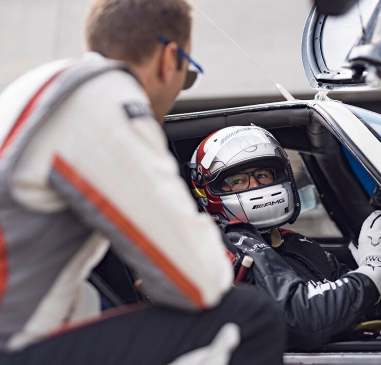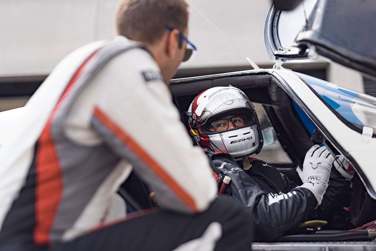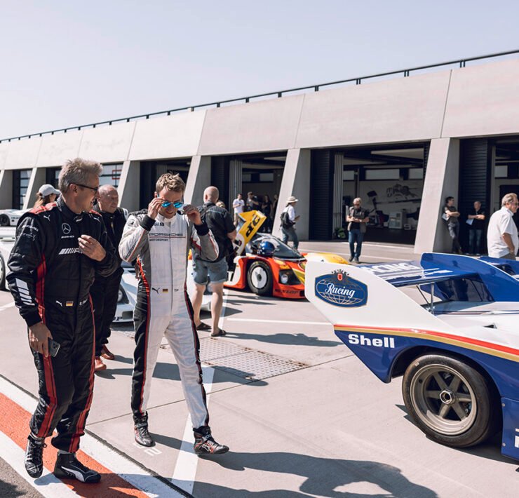What’s this guy in Mercedes overalls doing here? Testifying what a great car Porsche 962 still was when it neared the end of its career. Bernd Schneider (58) is still a rookie compared to the other ambassadors, but there is no denying the German-built an impressive career as a five-time DTM champion, all with Mercedes. No one did better. From 226 starts in the DTM, he scored 43 victories. Again, a record that still holds today. And of course, Schneider was a certainty in Mercedes endurance program with the CLK GTR. Even today, he remains an ambassador for Mercedes. Hence the overalls.