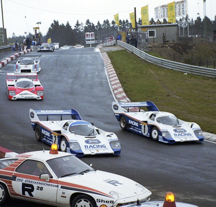 “It was a horrible experience. The Porsche 956 was a ground effect, so in order for it to work well, it had to keep contact with the ground. Which is not really compatible with the layout of the Nordschleife. The problem was, each time it lost contact with the ground, you had no idea where it was going to touch down again. So, we were constantly wrestling with the car, simply to keep it on the track. There was nothing funny about that race, it was completely out of place. In fact, I felt a bit of relief when Stefan crashed in the race, it meant I didn’t have to go back out.”