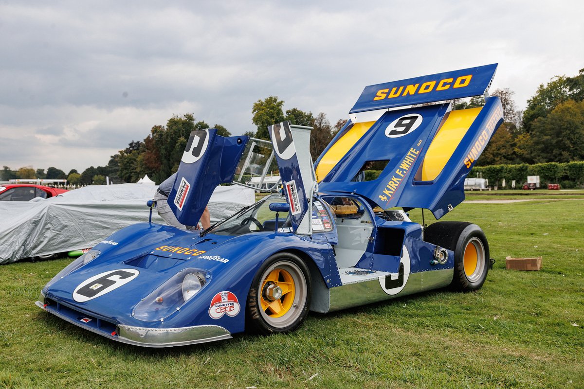 The main Le Mans class gathered competitors around a ‘Hunaudières speed and aerodynamics’ theme. The field ranged from the Guikas-entered ex-Penske Sunoco Ferrari 512M (1971) to the 1992 Peugeot 905 Evo1 Erik Maris brought, along with the Ascott Collection’s Lola T600 (1981) and many others. Unsurprisingly, the 512M took best in class, in front of Frédéric and Fanny Leroux’ 1964 CD-Panhard LM64.