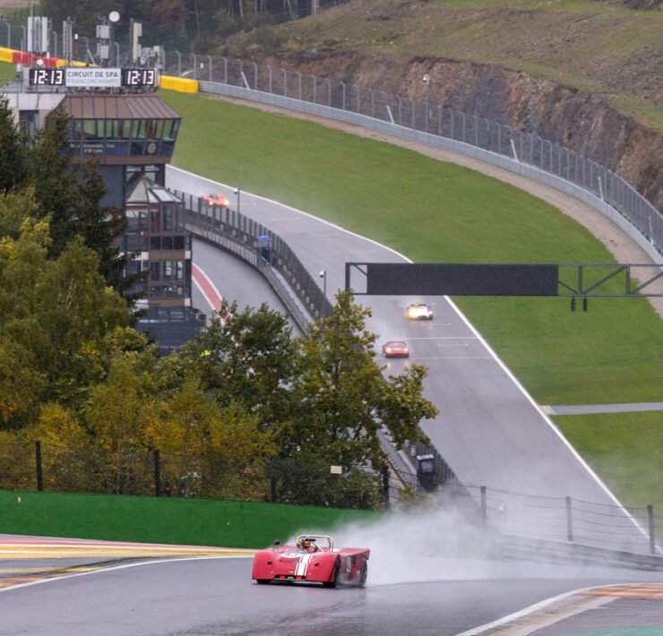 Of course, it’s sunny in Spa on Friday and it rains on race day on Saturday. Weather conditions made racing at the Spa Six Hours complicated. David and Olivier Hart and Nicky Pastorelli steered their Ford GT40 to victory.