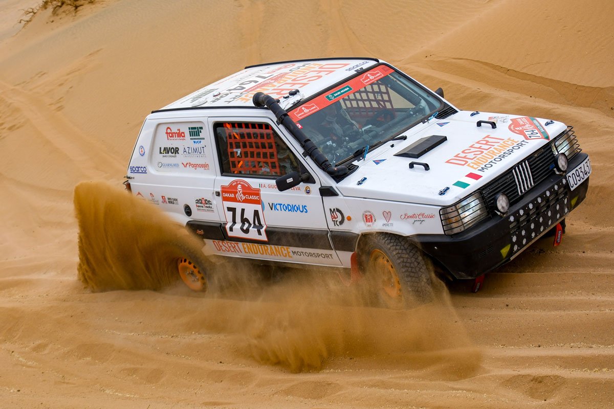 So, once it was clear the small Fiat Panda 4×4 was a worthy participant, more tiny cars showed up for this year’s Dakar Classic. The Swiss-based Team Desert Endurance Motorsport prepared two first-generation 4×4 Fiat Pandas for the Italian crews of Francesco and Alessandro Guanti and Marco Ernesto Leva and Alexia Giugnia.