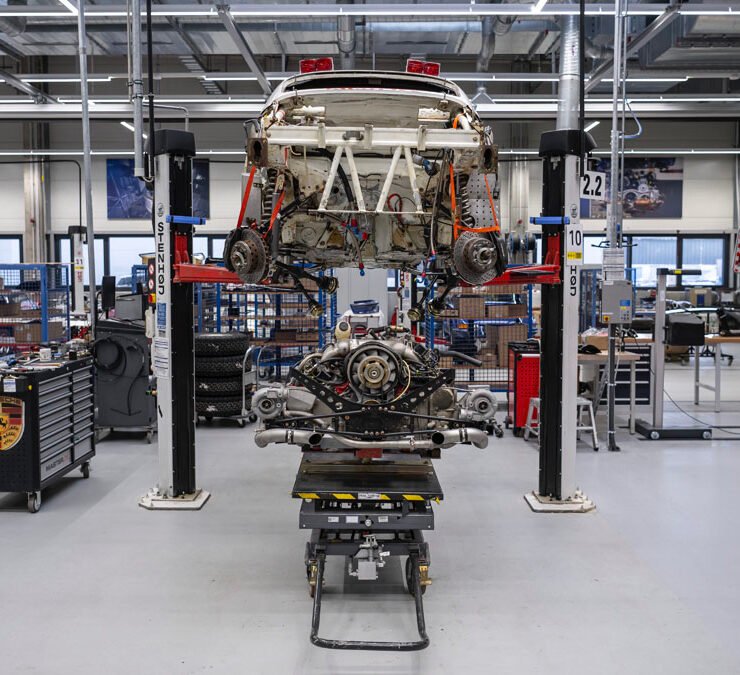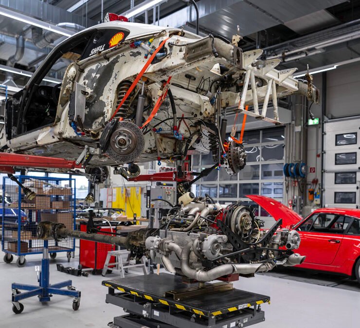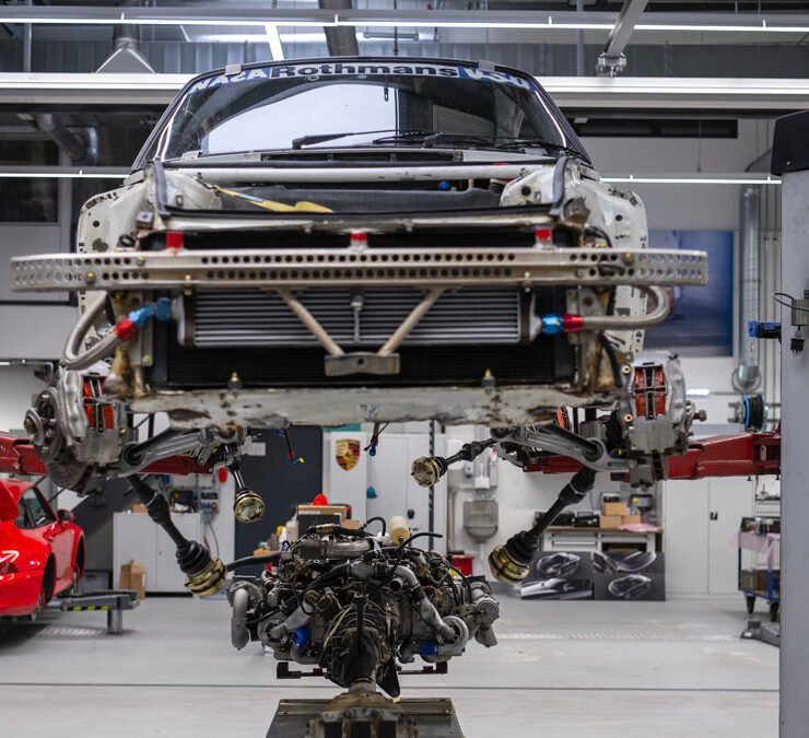 Porsche’s expert team was surprised at the overall state of the car and the components, renewing as little as possible. Even the Kevlar body panels, though cracked in places, were in remarkably good shape. After all, this was a purposely-built race car, not intended to last for decades.