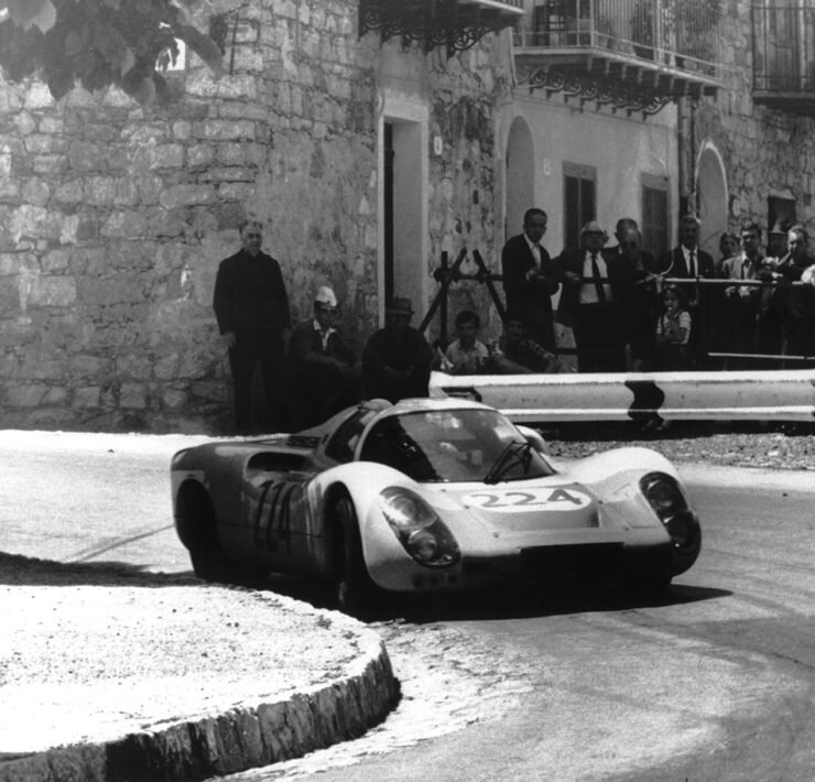 The Targa Florio in Sicily was very much tailored to his talents; the circuit consisted of a 72-kilometre lap close to Palermo. The ‘Piccolo Circuito delle Madonie’ was a specialist’s affair, none better than local Nino Vacarella. But over the last years, the nimble Porsches had made their mark at the Targa Florio, beating Ferrari and Alfa Romeo. For 1968, the Targa Florio put a 3-litre engine limit on the sports car category. As a result, the Ferraris stayed in Maranello. But with the 2-litre Alfa Romeo 33s, Porsche had serious competition at hand.